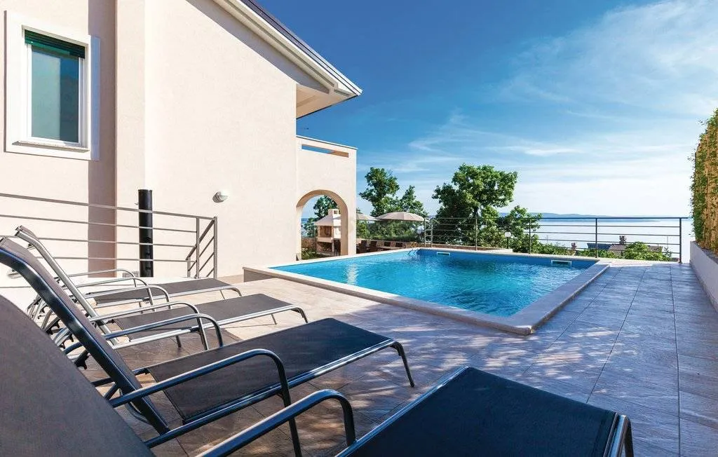 Samostojeća kuća s bazenom i prekrasnim pogledom na more i okolicu. Sastoji se od dnevnog boravka, , kuhinje, blagovaone, pet spavaćih soba, tri kupaone i tri Wc-a, sobe za biljar, prostora za rekreaciju, balkona i terase. U okućnici je lijepi bazen i roštilj te prostor za zabavu za djecu. Grijanje je centralno etažno na plin i klima uređaje. U kući su svi aparati i perillice,Tv, posuđe, mikrovalna pećnica i slično. Parkirnih mjesta je više nego dovoljno (6). Kuća se iznajmljuje digoročno. Režije se plaćaju odvojeno. Manuela 099 282 7750 099 45 12330 ID KOD AGENCIJE: 6265 Manuela Jović Mob: 099 451 2330 Tel: 051/301-502 E-mail: nela@sretnistanovi.hr www.sretnistanovi.hr Andrea Zeneral Mob: 099 673 1949 Tel: 051/301-502 E-mail: andrea@sretnistanovi.hr www.sretnistanovi.hr