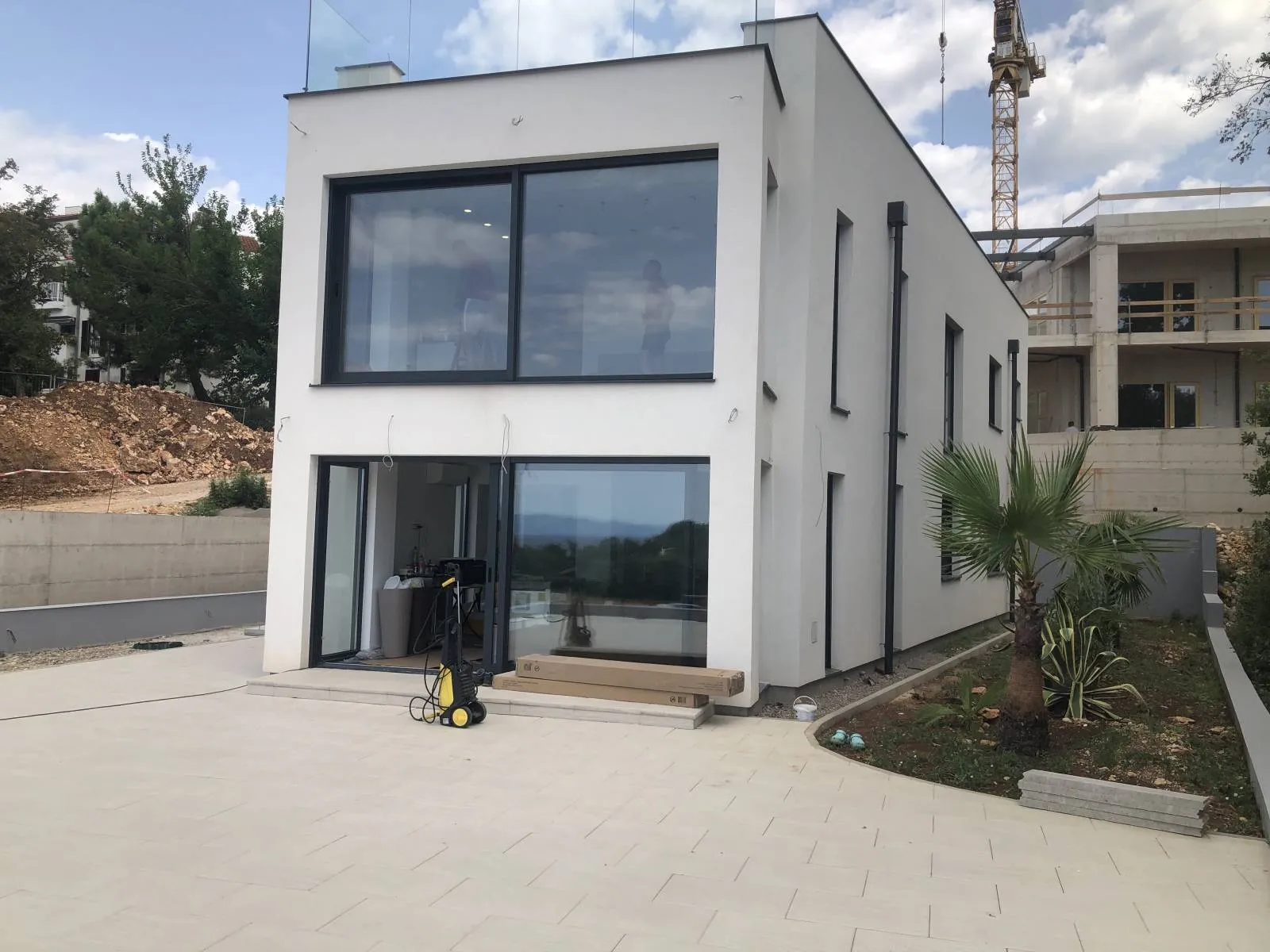 Luksuzna kuća novogradnja s pomoćnom kućom u Kostreni, (prvi najam i korištenje) na svega 50ak metara od mora, u prvom redu i sa predivnim pogledom na more. Kuća se sastoji od dva stana, svaki površine 84m2 i krovne terase. Stan u prizemlju ima 2 spavaće sobe a onaj na katu ih ima 3 , od kojih po jedna na svakom katu ima privatnu kupaonu. Svaki stan ima po 2 kupaone i wc. Ispred kuće je velika okućnica na kojoj su smjšteni terasa sa ljetnom kuhinjom, bazen sa sunčalištem te pomoćna kuća površine 35m2 u kojoj je relax zona, sobica za poslugu i kupaona. Kuća ima 4 parkirna mjesta u svojoj ograđenoj okućnici sa vratima na daljinsko upravljanje. Grijanje je podno, a hlađenje na klima uređaje u čitavoj kući. Bazen je grijani površine 45 m2 (1000x450). Kuća je izgrađena na parceli površine 1060 m2. Režije se plaćaju posebno prema stvarnoj potrošnji. (slike su snimane u početnoj fazi namještanja interijera i uređenja okoliša i bazena). ID KOD AGENCIJE: 6937 Helga Zeneral Mob: 099 415 8314 Tel: 051/301-502 E-mail: helga@sretnistanovi.hr www.sretnistanovi.hr