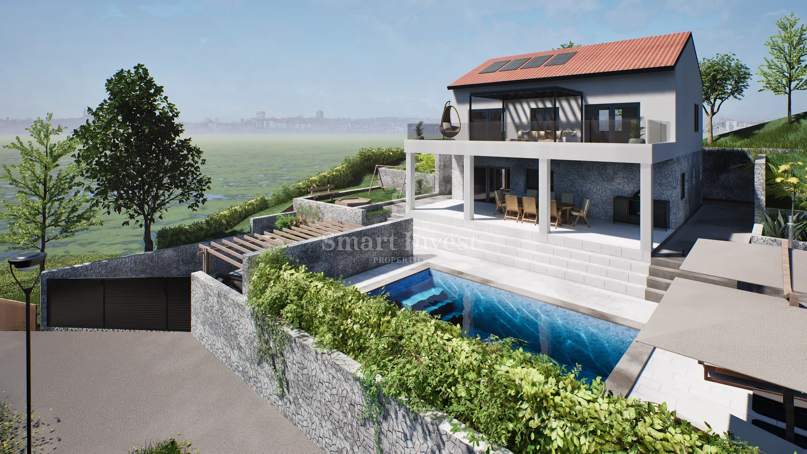 KOSTRENA, na prodaju je nova kuća s prekrasnim panoramskim pogledom na more i bazenom, na lijepoj i mirnoj lokaciji! GLAVNE ZNAČAJKE • površina kuće: 170 m2 • površina zemljišta: 622 m2 • 4 spavaće sobe, 3 kupaonice, wellness, igraonica • natkrivena terasa u prizemlju 25 m2 • terasa na katu 37 m2 • bazen Kuća se sastoji od prizemlja, kata i visokog potkrovlja te nudi vam komforan prostor za život ili odmor obitelji. U prizemlju kuće je smješten ulaz i hodnik, vešeraj, kupaonica, dnevni boravak s kuhinjom i blagovaonicom s izlazom na prostranu terasu. Ovdje je također i strojarnica s zasebnim ulazom s vanjske strane. Na katu se nalazi hodnik, 2 kupaonice te 3 spavaće sobe dvije od kojih imaju izlaz na prostranu terasu s fantastičnim pogledom na more. U visokom potkrovlju smještena je još jedna spavaća soba, wellness prostorija i igraonica za djecu. Navedena cijena se odnosi na kompletno završenu kuću ključ u ruke, s uređenom okućnicom i bazenom. Cijela kuća će biti opremljena podnim grijanjem na dizalicu topline te klima uređajima u svim spavaćim sobama i dnevnom boravku. Nekretnina se može kupiti u 1.fazi visokog roh-bau-a po cijeni od 500 000eura ili u 2.fazi po cijeni od 625 000eura. Prednost ove kuće je svakako prekrasna mirna lokacija, na vrhu slijepe ulice, koja jamči budućim vlasnicima mir i privatnost te sigurnost da ovaj predivni pogled na more nikad neće ništa blokirati. Istodobno do mora i svih sadražaja se stiže za samo par minuta vožnje, dok od centra Rijeke vas dijeli svega 10 minuta vožnje. Za više informacija i razgled nazovite +385/99/320-0008 ID KOD AGENCIJE: 14803 Marin Baričević Agent s licencom Mob: +385(0)99/320-0009 E-mail: marin@smart-invest.hr www.smart-invest.hr