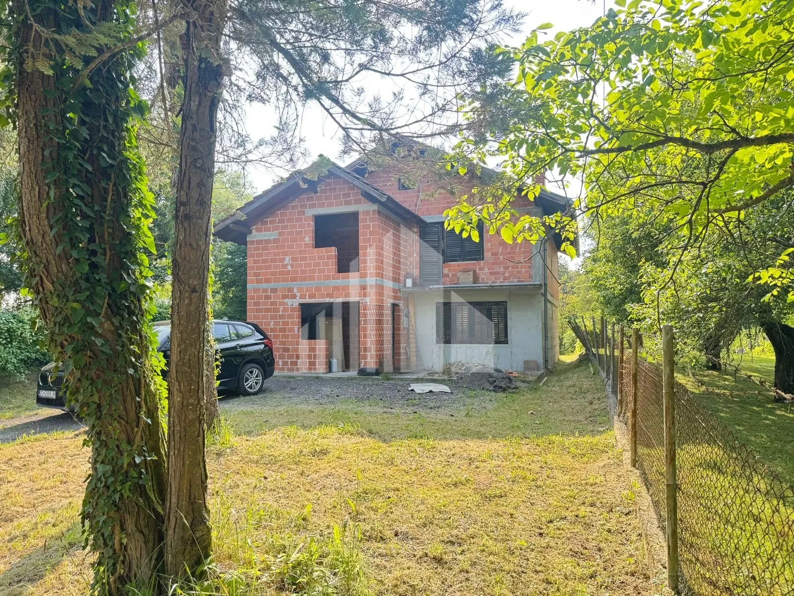 Kuća je smještena na parceli površine 908m2, a sastoji se od dvije etaže, svaka površine 100 m2 te prostrane okućnice od 808m2.