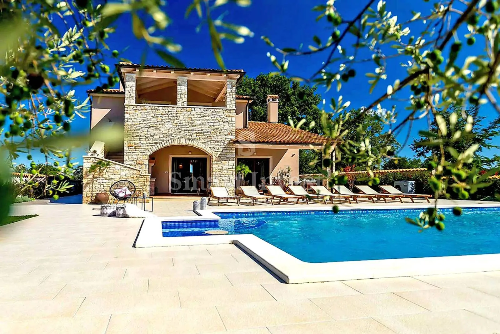 ISTRA – MARČANA, Ekskluzivna vila s bazenom, wellnessom, golf igralištem i sportskim terenima na iznimnoj lokaciji, 4 km do mora. Smještena na rubu uspavanog malog sela usred mirisne mediteranske šume i bujnih livada čarobnog istarskog sela, ova prekrasna vila spaja tradicionalni dizajn i moderan komfort visokog standarda s izvanrednim izborom aktivnosti i obiljem otvorenog prostora i sportskih sadržaja za djecu i odrasle. RASPORED Vila stambene površine 280 m2 smještena je na predivno uređenom zemljištu površine 2.800 m2, ima 4 spavaće sobe, 4 kupaonice + 1 wc. U prizemlju je smješten ulazni prostor, nevjerojatno ugodan dnevni boravak s prekrasnim otvorenim kaminom, sofisticirana kuhinja s dugačkim stolom za blagovanje, dvije spavaće sobe s vlastitim kupaonicama, jedna s bračnim krevetom i jedna s dva odvojena kreveta, dodatni wc. Velika terasa na prednjem dijelu vile služi kao vanjski prostor za kuhanje, blagovanje i boravak s prekrasnim pogledom na prostranu terasu s bazenom i okolni krajolik. U prizemlju je također spa prostor u kojemu se smjestila veća sauna, jacuzzi i posebna grijana klupa za opuštanje. Ovdje je i rustikalna konoba sa zasebnim ulazom opremljena sa stolom za bilijar, pikadom, barom i dodatnom blagovaonicom. Na katu se nalaze još dvije dvokrevetne spavaće sobe s vlasititim kupaonicama koje izlaze na lijepu zasjenjenu terasu (Baladur) koja nudi prekrasan pogled i mirno mjesto za opuštanje uz kavu ili piće. OPREMA • vila se prodaje u potpunosti opremljena • alarmni, video + senzori sustav • fenkojler + klime u sobama za grijanje i hlađenje, na dizalicu topline • kamin u dnevnom boravku • grijani bazen • sauna, jacuzzi, grijana klupa • automatkso navodnjavanje zelenih površina VANJSKI SADRŽAJI Prostrani prekrasno uređeni vrt nudi izbor divnih kutaka za odmor. Ovdje je smješten prekrasni grijani bazen od 50 m2 s prostorom za hidromasažu, teniski teren pune veličine, nogometno igralište, tereni za odbojku, košarku i badminton, kućica na drvetu izrađena po mjeri za djecu, dok je ljubiteljima golfa na raspolaganju igralište s 8 rupa. Parking za 6 automobila od kojih su 4 parking mjesta natkrivena. * POSTOJI MOGUĆNOST KUPNJE DODATNIH 2053 M2 GRAĐEVINSKOG ZEMLJIŠTA, s projektom za izgradnju još jedne vile, dokumentacija predana za ishodovanje građevinske dozvole! Za više informacija i razgled nazovite +385/99/320-0008 ID KOD AGENCIJE: 13357 Agencija Opatija Ovlašteni posrednik Mob: +385/99/320-0008 E-mail: office@smart-invest.hr www.smart-invest.hr