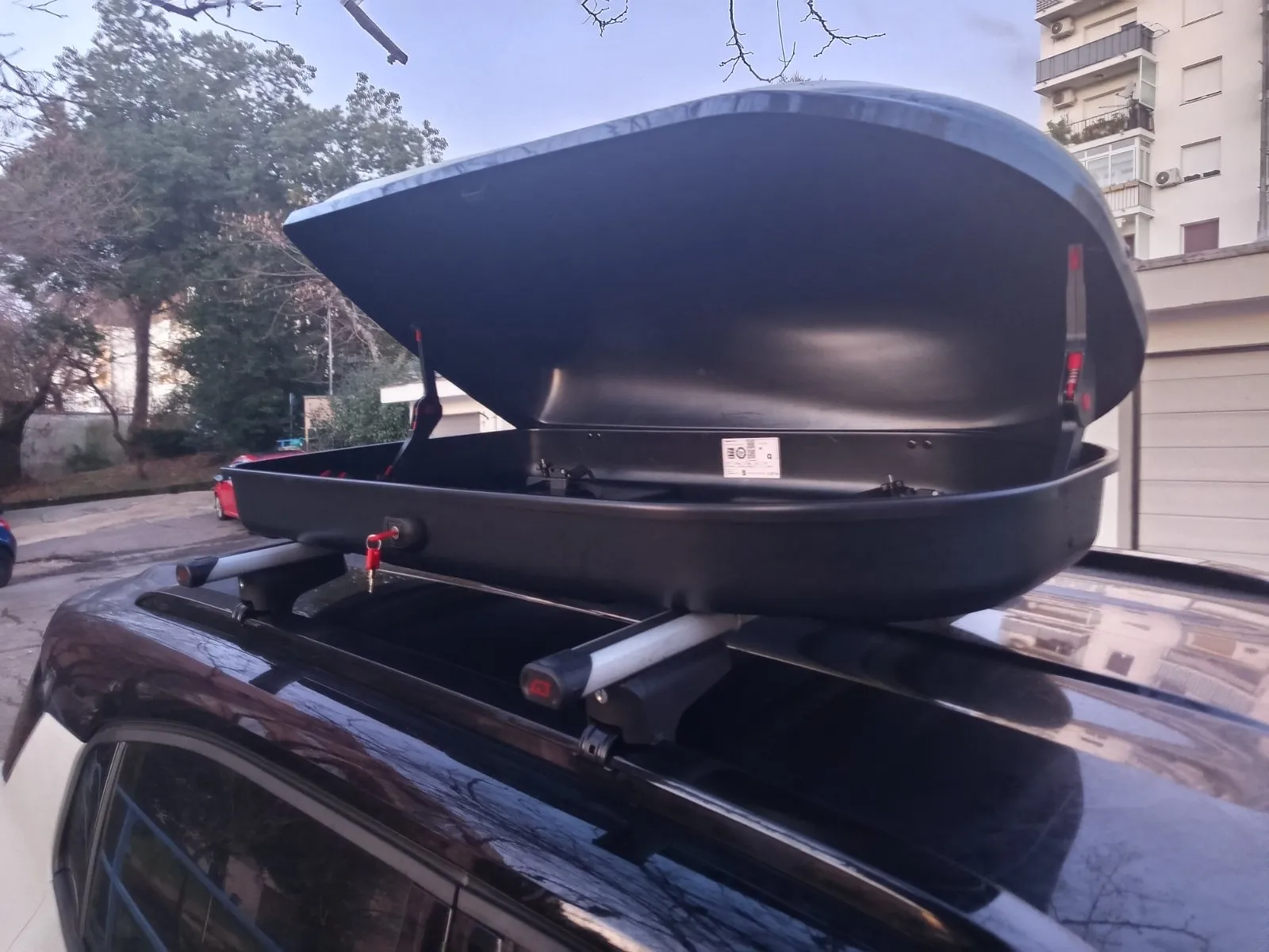 Kao nova, bez ikakvih tragova korištenja! Univerzalna krovna kutija zapremine 320 litara, dimenzije 1320 mm dužina, 745 mm širina, 365 mm visina. Ide na sve nosače! Vrlo jednostavno postavljanje s priloženim imbus ključem, brava s 2 sigurnosna ključa. NA PRODAJU JE SAMO KUTIJA, NE I KROVNI NOSAČI.