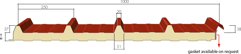 EUROCINQUE® je krovni panel sa pet rebara namijenjen stambenim i industrijskim objektima, napravljen od dva metalna lima koja su međusobno povezana izolacijskim slojem poliuretana.