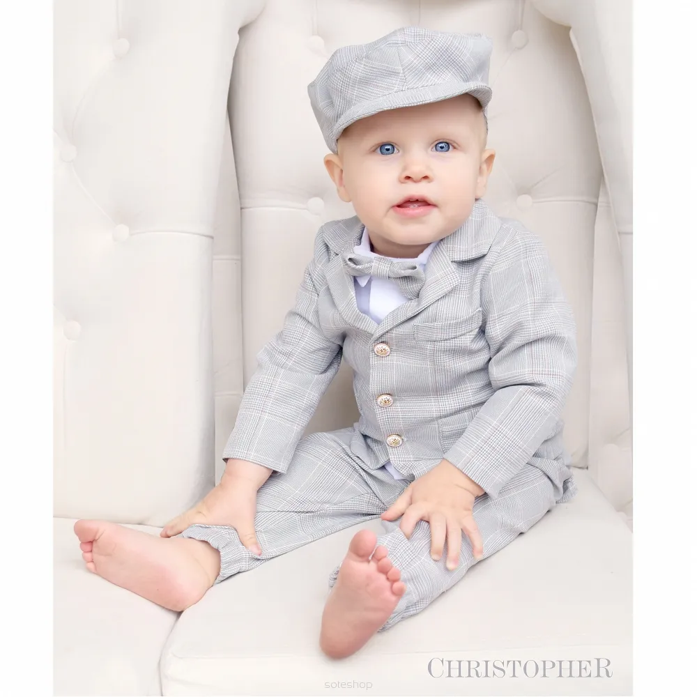 Kvalitetna izrada i brižljivo odabrani materijali odlika su Christopher krsnog programa. Velika prednost ovog kompleta je bodi košuljica ,kopča se po cijeloj dužini i između nogica tako kad se beba podigne i drži u naručju košuljica je uvijek ” u hlačama” i frajer je uvijek spreman za fotku. Sako ima dva džepića i treći na prsima za maramicu.
