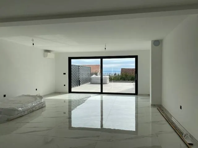 Moderna novogradnja, kuća u nizu u opatijskom naselju Pobri s lijepim pogledom. Stan je na dvije etaže sa terasom, bazenom i okućnicom. Dvoetažni stan se sastoji od prizemlja i kata. U prizemlju su ulaz, WC, praona, utility room, kuhinja, blagovaona i dnevni boravak s izlazom na terasu i hidromasažni bazen. Na katu se nalaze stubište,hodnik, tri spavaće sobe, tri kupaone, garderoba i loggia. Grijanje je podno-dizalica topline Vaillant, a hlađenje i grijanje multi split Daikin. Izvrstan hrastov troslojni parket, prvoklasna keramika, Villeroy & Boch/Grohe sanitarije i armature, stolarija ALU/pvc, sauna u wellnessu, priprema za solarnu elektranu samo su dodatna kvalitetna oprema u kući. Energetski razred "A". Uredni papiri građenja i vlasništvo. Manuela 099 282 7750 099 45 12 330 ID KOD AGENCIJE: 7643 Manuela Jović Mob: 099 451 2330 Tel: 051/301-502 E-mail: nela@sretnistanovi.hr www.sretnistanovi.hr Andrea Zeneral Mob: 099 673 1949 Tel: 051/301-502 E-mail: andrea@sretnistanovi.hr www.sretnistanovi.hr