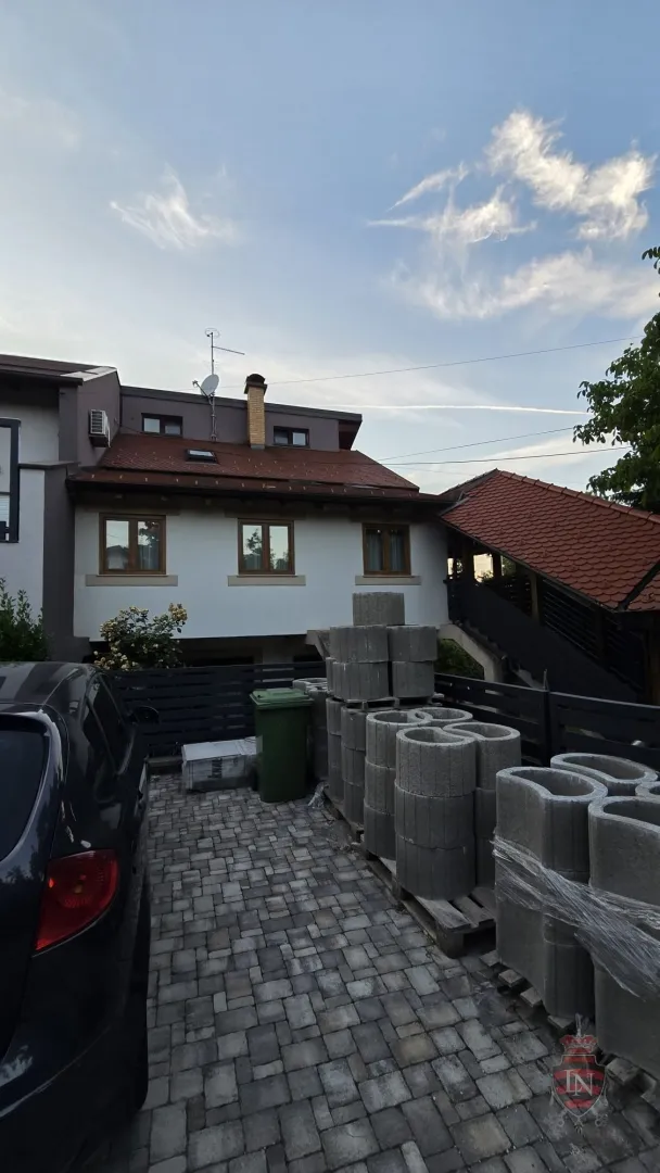 Kuća je dvojna na vlastitoj parceli. Sastoji se od suterena, visokog prizemlja , kata i potkrovlja. Ispred kuće je terasa od 20 m2, a iza je natkrivena terasa od 15 m2. Spremište se nalazi van kuće površine 8 m2.