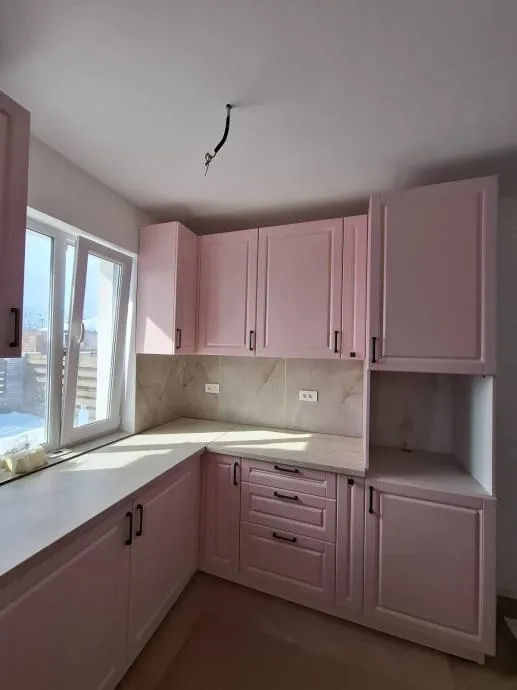 Kuhinja pink roze boje rustikalna izrađena po mjeri