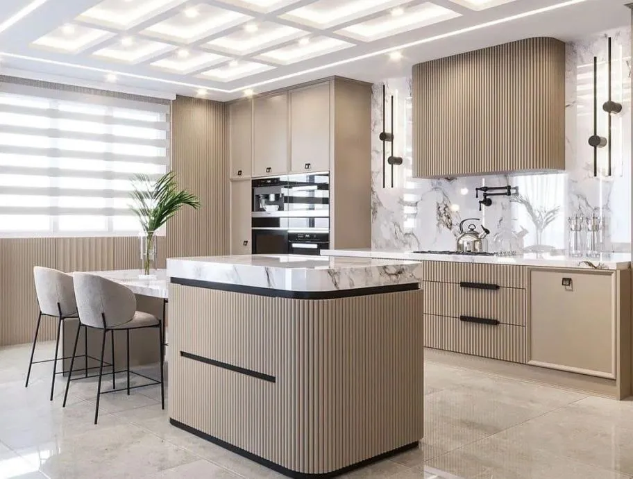 Kuhinja sa otokom sa mdf rebrastim frontama