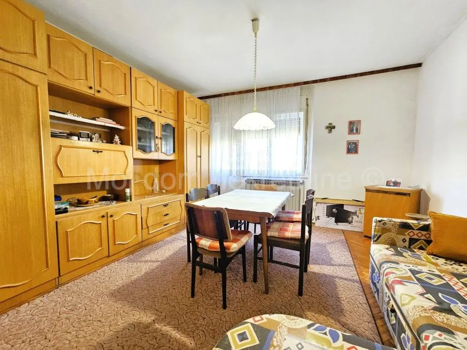 Prodaje se kuća sa pomoćnim objektom i okućnicom od cca 240m2. Kuća se proteže na 3 etaže (prizemlje, kat, i potkrovlje). Sastoji se od 2 odvojena stana (1 sobnog stana u prizemlju od cca 40m2 i 3 sobnog stana s balkonom od cca 82m2 na katu) te neuređenog potkrovlja koje ima zaseban ulaz. Garaža od cca 20m2 ima ulaz direktno sa ulice.