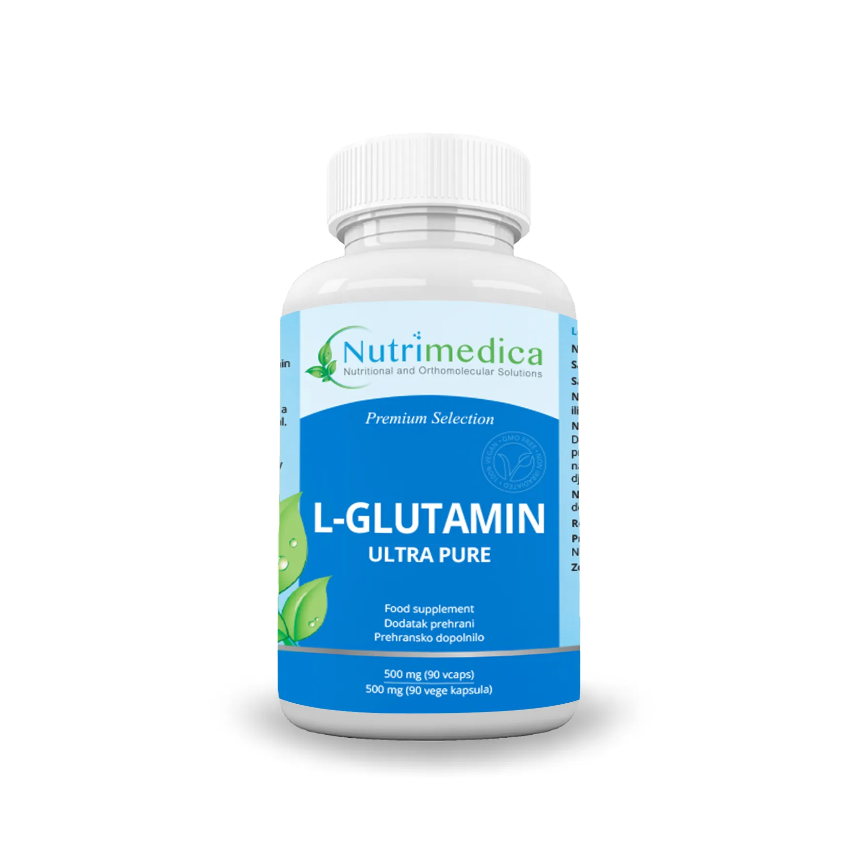Nutrimedica L-Glutamin prah – 100% L-glutamin u pakiranju od 500mg 90 vcaps. Podržava zdravlje crijeva, imunitet i brži oporavak mišića. Pogodan za vegane i bez aditiva.
