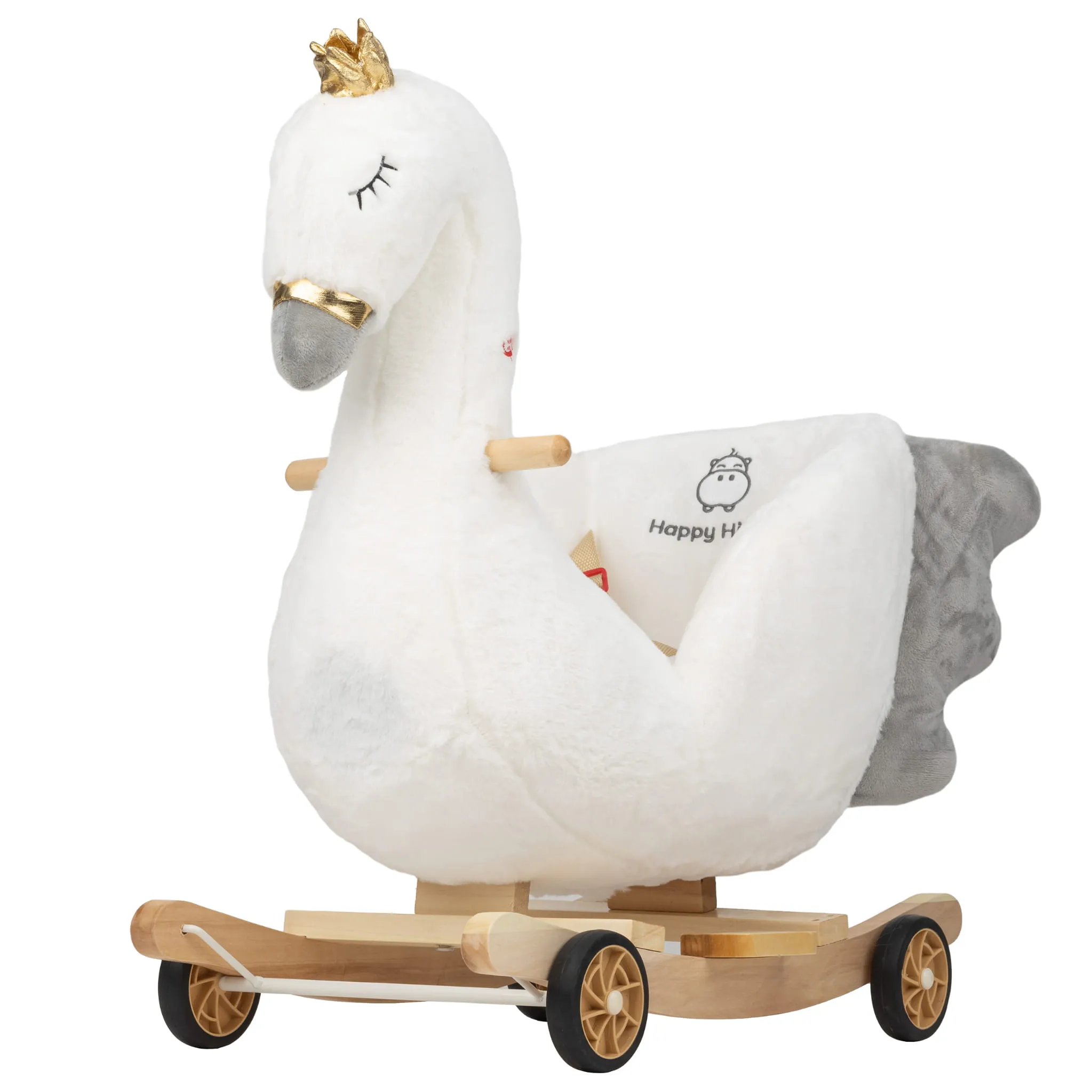 Kako bi se ljuljačka u tren oka pretvorila u guralicu, ljuljačka dolazi sa četiri dodatno ojačana plastična kotača zbog čega mogu podnijeti težinu do 30 kilograma. Zahvaljujući podstavljenom sjedalu s visokim naslonjačem i bočnim stjenkama te podesivim remenčićem kojim se beba može zakopčati, djeca će se ljuljati sigurno i udobno.