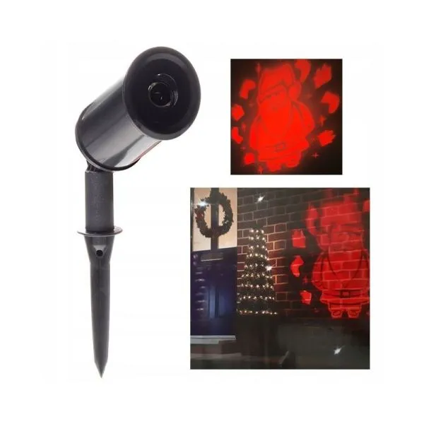 Božićni LED projektor s motivom Djeda Božićnjaka, zvijezda i poklona.