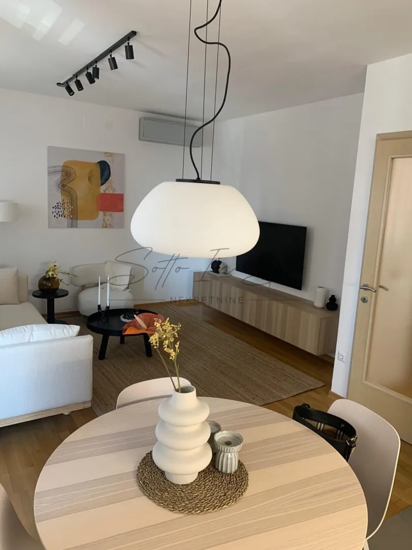 U prvi dugoročni najam daje se nekretnina na drugom katu stambene zgrade na području Črnomerca ukupne površine od 49,29m2 i garažno parkirno mjesto do kojeg se spušta autolift. Stan se sastoji od ulaznog prostora sa velikim ugradbenim ormarom, kupaonice sa toaletom, jedne spavaće sobe, dnevnog boravka i kuhinje sa blagavaonom, te velike loggie, dok se ostava nalazi na -1 etaži. Orjentacija stana je zapadna što stanu daje svijetao i topli ugođaj. Stan je opremljen svim aparatima i posuđem, te je kao takav spreman za useljenje za maksimalno dvije osobe, bez kućnih ljubimaca i pušenje nije dozvoljeno u stanu. Grijanje je centralno etažno plinsko, stan ima klimu, te pametni sustav za svijetlo i rolete. Atraktivnost ove nekretnine je lokacija koja sa svojom dobrom povezanošću omogućava da ste u strogom centru grada za deset minuta bilo tramvajem ili autobusom čije stanice su u neposrednoj blizini. Stan se daje u najam na minimalno godinu dana pri čemu je potrebno potpisati ugovor o najmu koji se solemnizira, dok se pri potpisu plaća depozit u visini jedne mjesečne najamnine i prva najamnina. Za razgledavanje i više informacija molimo vas kontaktirajte na broj: 00385995362019 ili na E-mail: info@sottoinsu.hr Sotto in su nekretnine
