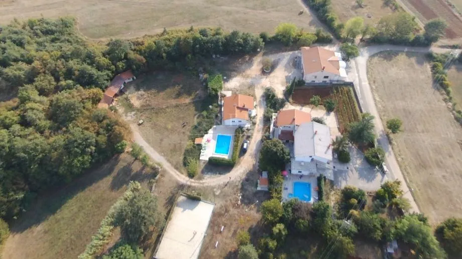 Imanje koje je prometno vrlo dobro povezano (blizina istarskog ipsilona), u prekrasnom zelenom krajoliku, mirno je luksuzno mjesto idealno za život velike obitelji ili kompleks već pripremljen za iznajmljivanje (kategorizirani apartmani s bazenima i poslovni objekt) s prikladnim sportsko-rekreativnim sadržajima i vlastitim poslovnim prostorom koji omogućuje otvaranje biznisa.