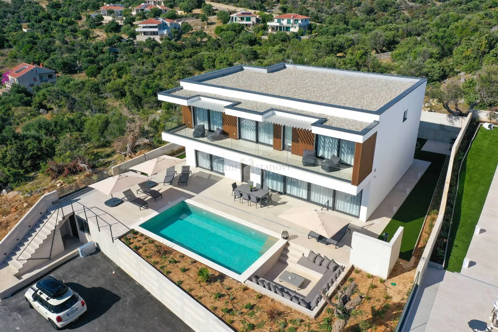 Prodaje se novoizgrađena luksuzna kuća u mirnome i bajkovitom mjestašcu Jakišnica na otoku Pagu, na samo 200 metara od mora sa otvorenim pogledom na more i lučicu te na jedan od najljepši zalazaka sunca u Hrvatskoj. Nekretnina se sastoji od 2 jedinice - kuće kao glavnog prostora koji se prostire kroz prizemlje i 1. kat, te posebno odvojenim apartmanom sa zasebnim ulazom, zamišljeno za osoblje ili prostor za druženje i zabavu. Prizemlje kuće se sastoji od dnevnog boravka, blagovaonice i kuhinje, spavaće sobe s kupaonom, gostinjske kupaone, teretane s saunom i ostave, a iz dnevnog se boravka izlazi na prekrasnu terasu s bazenom i uređenim okolišem, travnjak s vanjskim kaminom/roštilj zonom. U okućnici, ispod terase, je također i već navedeni apartman s kupaonom i spavaćom sobom (poseban ulaz). Na prvom katu su smještene tri spavaće sobe s vlastitim kupaonicama, degažman, vešeraj, dva balkona te jedna loggia. Sva bazenska oprema je prvoklasna sa toplinskom pumpom i strojarnicom, a bazen koisti ekološki i ekonomičan susatav pročišćavanja - elektroliza solju). Predviđen je prostor za parkiranje 4 automobila. Grijanje/hlađenje je putem podnih klima uređaja u svakoj sobi. Stolarija je ALU Shuccos 3-slojnim staklima, fasada bijela, Sto. Kuća je kategorizirana s 5 zvijezdica. Kuća se prodaje potpuno namještena i opremljena svim inventarom (kao na priloženim fotografijama). Čisto vlasništvo i uredni papiri gradnje, bez tereta i sa svim dozvolama. Jakišnica je lijepo, mirno mjesto na otoku Pagu s lijepim plažama (od koje je kuća udaljena 200 metara) te brzim pristupom drugim mjestima na otoku - Lun, Novalja, plaža Zrće, kao i brzim pristupom brodskom prijevozu do otoka Raba. Udaljena je nešto manje od 1:30h vožnje od zračne luke Zadar-Zaton. Građevina je arhitektonski oblikovana u skladu sa suvremenim modernim izričajem, te usklađena s krajobraznim vrijednostima podneblja i okolinom u kojoj se nalazi. Dovršetak 1.7.2023. ____________________ EN This newly built luxury house for sale is located in the quiet little town of Jakišnica on the island of Pag, just 200 meters from the sea. The house consists of 2 units - the main space that extends through the ground floor and the 1st floor, and a small apartment with a separate entrance (intended for staff). The ground floor consists of a living room, a dining room and a kitchen, a bedroom, a bathroom and a storage room, and there is a beautiful terrace with landscaped surroundings and a swimming pool and an outdoor barbecue area. In the ground floor area there is also the already mentioned apartment with bathroom and bedroom (separate entrance). On the first floor, there are three bedrooms with their own bathrooms, a hallway, a sauna area, gym area, two balconies and a loggia. There are 4 parking spaces. Heating/cooling is via air conditioning in each room. All windows are is ALU with 3-layer glass. Jakišnica is a beautiful, quiet place on the island of Pag with beautiful beaches (from which the house is 200 meters away) and quick access to other places on the island - Lun, Novalja, Zrće beach, as well as quick access to boat transport to the island of Rab. It is less than 1:30 hour drive from Zadar-Zaton airport. Completion/move-in on 1.7.2023. ID KOD AGENCIJE: 6004 Andrea Zeneral Mob: 099 673 1949 Tel: 051/301-502 E-mail: andrea@sretnistanovi.hr www.sretnistanovi.hr Helga Zeneral Mob: 099 415 8314 Tel: 051/301-502 E-mail: helga@sretnistanovi.hr www.sretnistanovi.hr