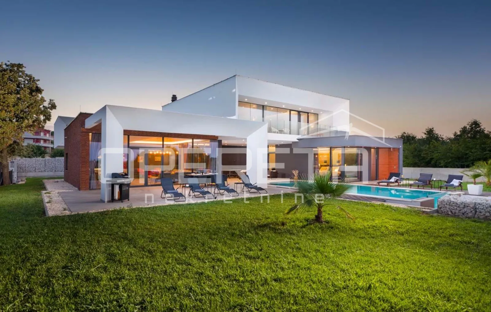 Luksuzna SMART HOME villa s Infinity bazenom 400m od mora Na prodaju luksuzna SMART HOME vila na traženoj lokaciji. Vila se nalazi svega četiristo metara od mora što joj omogućava prekrasne poglede iz vlastite udobnosti. Sastoji se od 501,57 m2 stambenog prostora te se nalazi na okućnici ukupne kvadrature 780 m2. Prostrana okućnica u potpunosti je uređena te ograđena. Pruža parking za više automobila, uređeni travnjak, sunčalište te grijani bazen ukupne površine 40 m2. Bazen je grijani inverterskom dizalicom topline od 15 kW + solarnim panelima na krovu zgrade. Također ima najsuvremeniju dezinfekciju vode putem soli, elektrolizom stvara prirodni klor. Sunčalište bazena također pruža i roštilj te pregršt prostora za druženje i odmor. Prizemlje vile nudi otvoreni prostor namijenjen kuhinji s blagovaonicom te dnevnom boravku s natkrivenom terasom. Također pruža i saunu, teretanu, spavaću sobu te toalet. Radi pomno iskorištenog prostora pogodan je za osobe s invaliditetom. Na katu se nalaze tri spavaće sobe s vlastitim kupaonicama. Kupaonice su na poseban i moderan način ukomponirane u prostor kako bi Vam boravak u njima bio ugodan i otmjen. Iz soba se pruža pogled na more i prirodu kraja. Također nude i natkrivenu terasu sa sjedećim garniturama. Grijanje je podno te se u svim prostorijama nalaze i klima uređaji. Vila se prodaje u potpunosti namještena te spremna za useljenje, predstavlja odličan odabir pri kupnji doma ili turističke investicije na atraktivnoj lokaciji. Prva pješčana plaža nalazi se na svega par minuta hoda. Životni sadržaji poput ljekarne, dućana, restorana i sličnih nalaze se u neposrednoj blizini. Lokacija omogućava brojne sadržaje nadomak ruke, poznate turističke atrakcije te srednjovjekovni gradovi na obali, odlično su povezani s nekretninom te lako dostupni. Središnja Istra te neki od značajnijih gradova poput Pule i Fažane nalaze se na svega dvadesetak minuta vožnje. Udaljenost od restorana: 700 m Udaljenost od prvog kafića: 800 m Udaljenost od dućana: 400 m Udaljenost od supermarketa: 2,8 km - Medulin Udaljenost od zračne luke: 9,5 km Pula USLUGA KREDITNOG POSREDOVANJA: Opereta ekspert pruža besplatnu uslugu kreditnog posredovanja, uspoređujući ponude više banaka na jednom mjestu. Naš tim objašnjava sve opcije i vodi vas kroz cijeli proces – od konzultacija do isplate kredita, kako biste donijeli informiranu financijsku odluku i uštedjeli vrijeme.