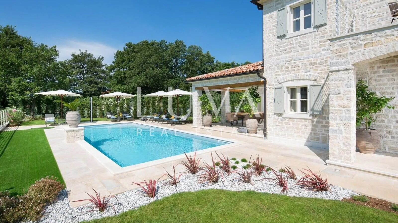 Prodaje se luksuzna vila s bazenom u malom mirnom mjestu Ladići blizu Kanfanara. Kanfanar je odlično prometno povezan s autoputom kroz Istru, a u blizini se nalazi i poznati grad Rovinj. Osim Rovinja, u blizini su poznati gradovi kao što su Poreč, Novigrad i Vrsar. Ova luksuzna vila je izgrađena 2016. godine, površine je 359 m2 i prostire se na 2 etaže. Dio je kompleksa od nekoliko luksuznih vila koje imaju zajedničke sportske terene i igralište za djecu. Vila ja građena u tradicionalnom istarskom stilu u kamenu s kosim krovom s crijepom. Osim eksterijerom i interijerom dominira tradicionalan stil s kamenim zidovima, drvenim gredama i rustikalnim drvenim namještajem. U prizemlju vile se nalazi prostrani dnevni boravak s kaminom koji mu daje dodatni šarm, potpuno opremljena kuhinja s dizajnerskim aparatima te veliki stol za blagovanje. Ispred kuće se nalazi vanjski bazen, a pored njega se nalazi natkrivena terasa s roštiljem i stolom za blagovanje. Vila ima 4 spavaće sobe s vlastitim kupaonicama i prodaje se potpuno namještena i opremljena. Vila je već nekoliko godina u funkciji turističkog najma, a osim ove vile na prodaju su i sestrinske vile pa je moguća kupnja više sestrinskih vila kao investicija u turizam u Hrvatskoj. Za sva dodatna pitanja stojimo na raspolaganju ID KOD AGENCIJE: 15069 Ivan Jelaska Mob: +385 91 288 0082 E-mail: ivan@luvarealestates.com www.luvarealestates.com
