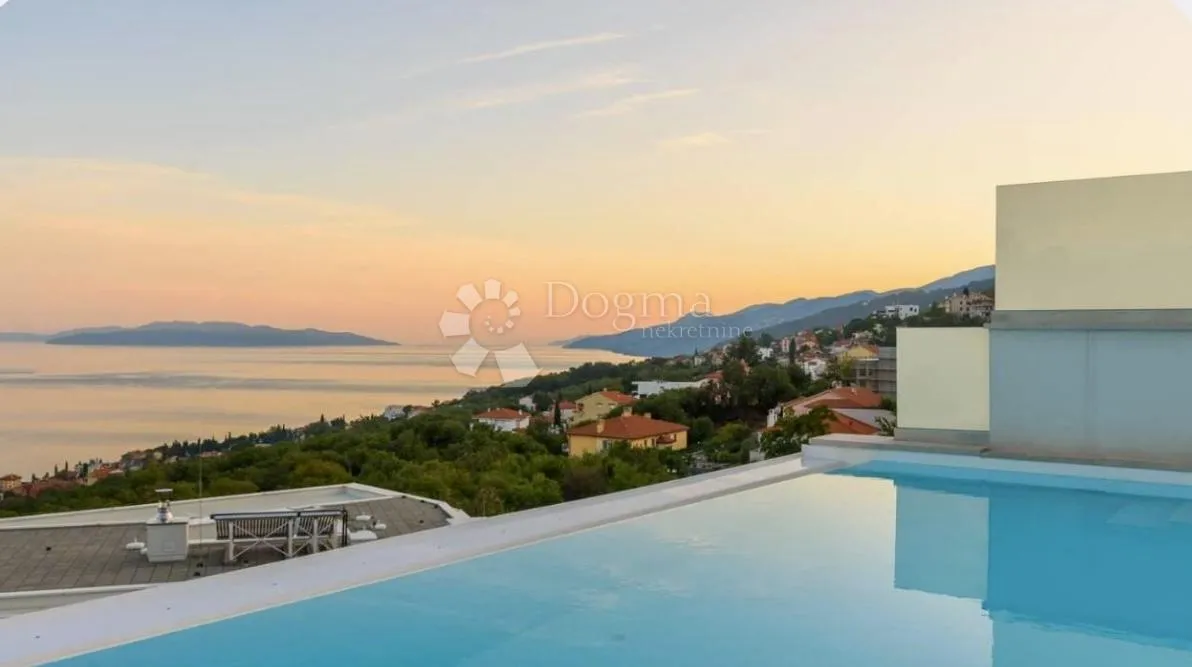 PREDSTAVLJAMO LUKSUZNU VILLU S PANORAMSKIM POGLEDOM NA MORE – OKOLICA OPATIJE. U prodaji je moderna villa smještena na iznimnoj lokaciji u blizini Opatije, s panoramskim pogledom na more i Kvarnerski zaljev. Ova jedinstvena nekretnina pruža savršenu kombinaciju elegancije, privatnosti i mediteranskog načina života. Villa je projektirana s naglaskom na luksuz, udobnost i maksimalno uživanje u prirodnom okruženju. Velike staklene stijene omogućuju obilje prirodnog svjetla i spektakularan pogled na more iz svih dijelova kuće. Arhitektonski dizajn vile osmišljen je kako bi maksimalno iskoristio prirodno svjetlo i jedinstvenu lokaciju, a za uređenje korišteni su najkvalitetniji materijali. U prizemlju se nalazi veliki dnevni boravak s blagovaonicom i kuhinjom, prostor za druženje, terasa, uređeni vrt i prekrasan infinity bazen. Na gornjoj etaži smještene su četiri spavaće sobe sa terasama, te još jedan infinity bazen koji također vizualno stvara dojam spajanja s morskim horizontom. Tri poznate plaže nalaze se u neposrednoj blizini, a zračna luka Rijeka udaljena je 38 km. Ova impresivna nekretnina okružena zelenilom, savršena je za opuštanje, sunčanje i uživanje u nezaboravnim zalascima sunca. Za sve dodatne informacije i dogovor oko razgledavanja kontaktirajte agenticu - Amina Krčmar 098 180 8006 ID KOD AGENCIJE: ZG886637 Amina Krčmar Asistent u posredovanju Mob: 098/180-8006 Tel: 01/647-3011 E-mail: amina.krcmar@dogma-nekretnine.com www.dogma-zagreb.com