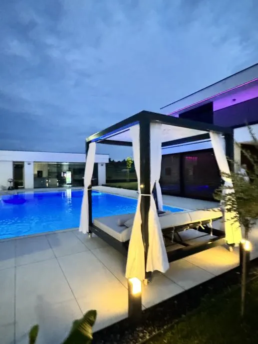 MODEL: Drveni baldahin RUSTIC PREMIUM uključuje integriranu rasvjetu koja stvara čarobnu atmosferu u večernjim satima, čineći ga idealnim mjestom za opuštanje nakon dugog dana.