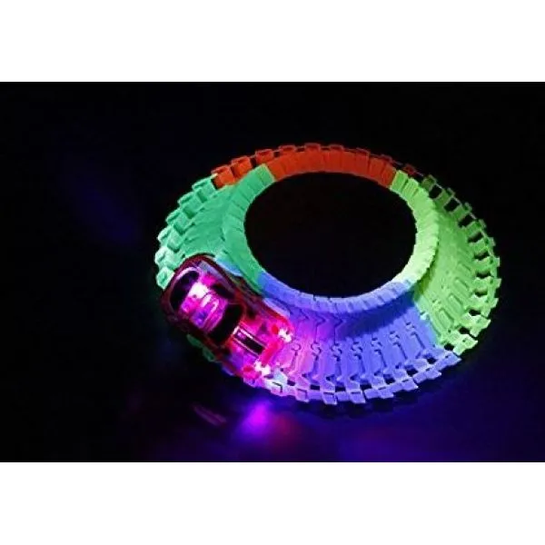 magična staza ima 56 dijelova staze u razlicitim neonskim bojama i jedan autic s led svjetlima.