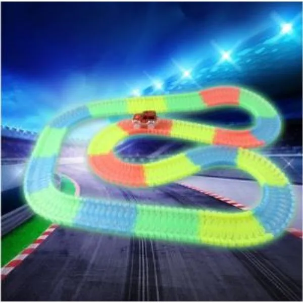 magična staza ima 220 dijelova staze u razlicitim neonskim bojama i jedan autic s led svjetlima..