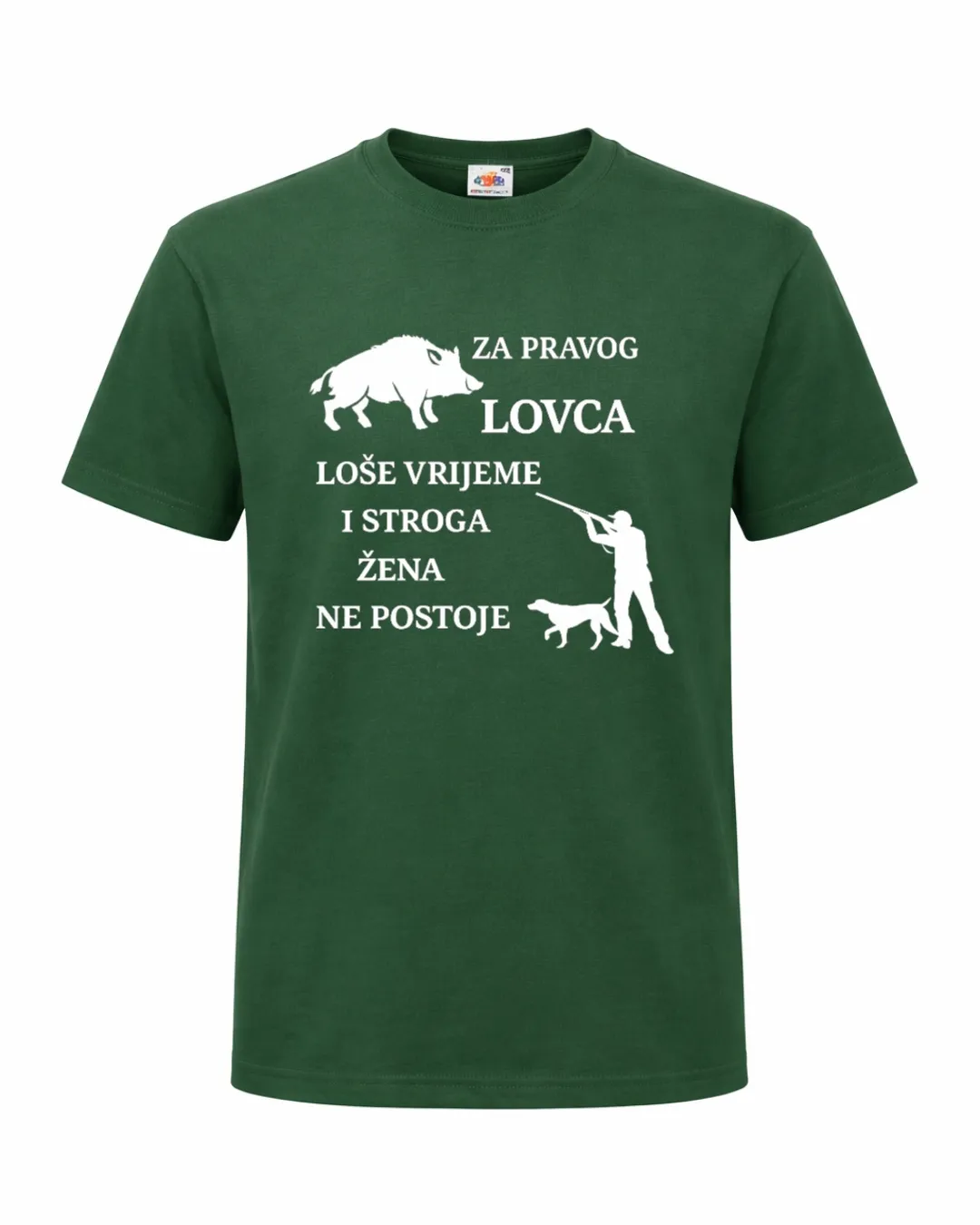 Majica s natpisom “Za pravog lovca loše vrijeme i stroga žena ne postoje” savršen je izbor za svakog strastvenog lovca.