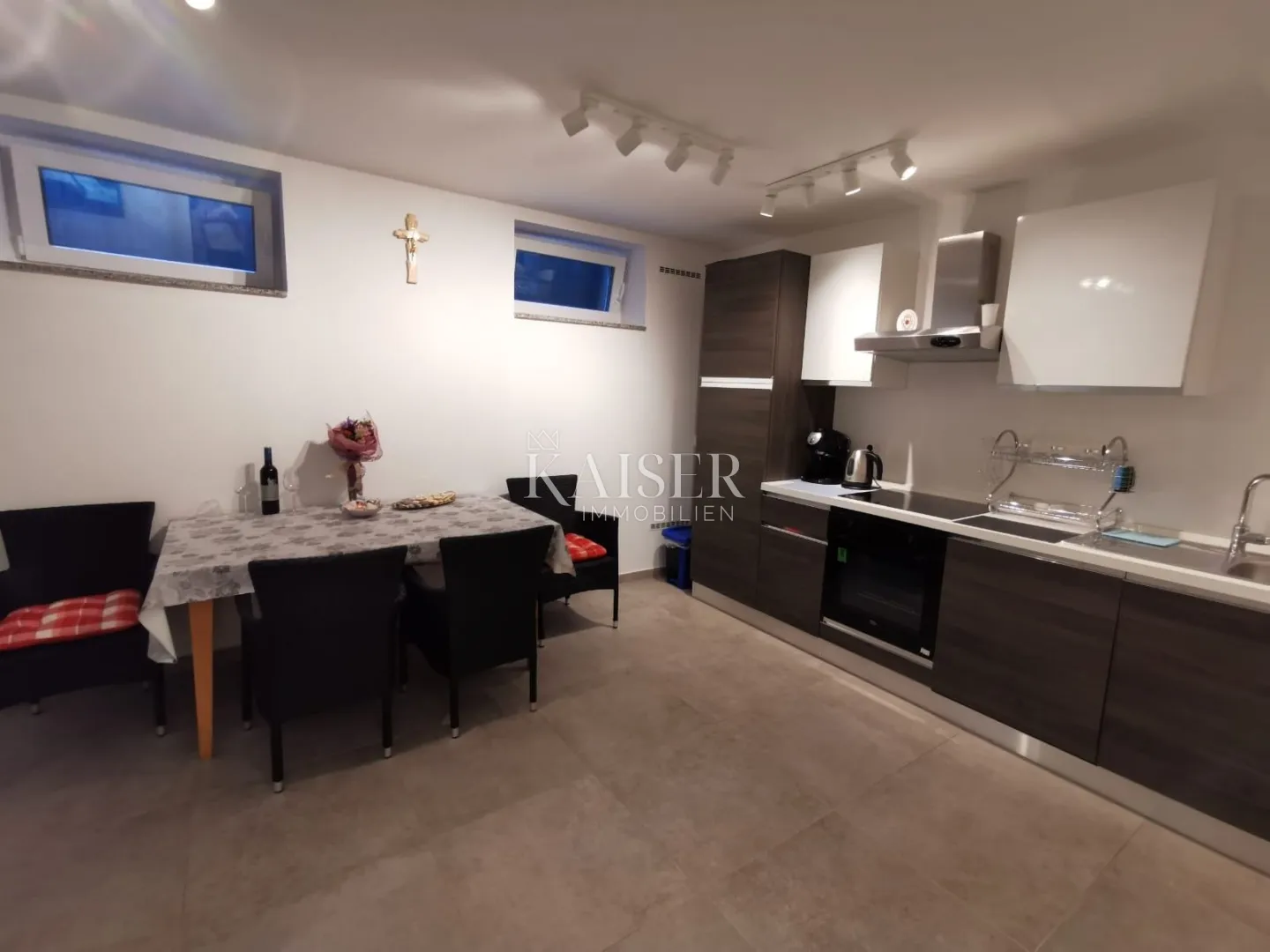 Kaiser Immobilien predstavlja kompletno namješten apartman na Malom Lošinju u uvali Artatore. Apartman je ukupne stambene površine 46, 09 m² i smješten u mirnom naselju Artatore, svega 70 metara od mora odnosno drugi red od mora. Apartman se nalazi u suterenu stambene zgrade od ukupno 10 stanova. Zgrada je izgrađena 2019. godine. Stan se sastoji od dvije spavaće sobe, kupaonice, boravka s kuhinjom i hodnika. Apartman je u potpunosti namješten i odmah useljiv, što ga čini savršenim za osobnu upotrebu ili kao investiciju za turistički najam. Zgrada u kojoj se nalazi apartman opremljena je video nadzorom i portafonom, što dodatno osigurava privatnost i sigurnost. U neposrednoj blizini, 100 metara pješačke udaljenosti, nalazi se besplatni javni parking, a cijelo okruženje odiše mirom i mediteranskim šarmom – idealno za bijeg od svakodnevice. Za više informacija kontaktirajte agenta: Davor Piškulić Kaiser Immobilien davor@kaiser-immobilien.hr +00 385 95 583 8240 (WhatsApp, Viber) ID KOD AGENCIJE: 110-235 Davor Piškulić Agent s licencom u posredovanju u prometu nekretnina Mob: +385955838240, +385995677888 E-mail: davor@kaiser-immobilien.hr www.kaiser-immobilien.hr
