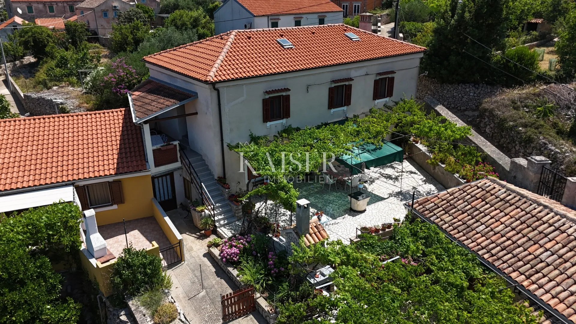 Kaiser Immobilien predstavlja održavanu te kompletno uređenu apartmansku kuću s okućnicom na mirnoj lokaciji na vrhu Velog Lošinja s prekrasnim pogledom na njegovu povijesnu jezgru i more. Kuća se sastoji od dva neovisna apartmana, ukupno sa šest soba, od toga četiri spavaće sobe, dvije kupaonice, dvije kuhinje s dnevnim boravkom, dvije terase ukupne neto stambene površine od 183m2 (plus potkrovlje). Na dvorištu se nalazi sačuvani starinski bunar. Imanje se može dobro iznajmiti ili koristiti za vlastitu rekreaciju. Grad Veli Lošinj na jugoistočnom dijelu otoka Lošinja popularno je manje ljetovalište. Tradicionalno je to klimatsko i ljekovito lječilište s blagom klimom, velikim brojem sunčanih sati i bogatom mediteranskom vegetacijom. Za više informacija, kontaktirajte agenta na broj +420602405298 ili na e-mail adresu: ladislav@kaiser-immobilien.hr. ID KOD AGENCIJE: 122-029 Ladislav Kreiner Agent s licencom u posredovanju u prometu nekretnina Mob: +420 602 405 298, +385995677888 E-mail: ladislav@kaiser-immobilien.hr www.kaiser-immobilien.hr