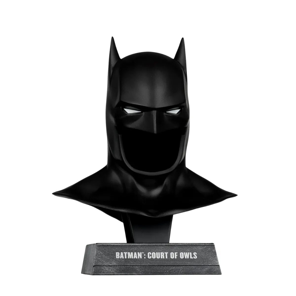 Based on The Dark Knight from Batman Court of Owls The New 52 and a new beginning for BATMAN! 1:3 SCALE COWL REPLICA based on Batman Court of Owls. Stands approximately 7″ tall and includes display stand.
