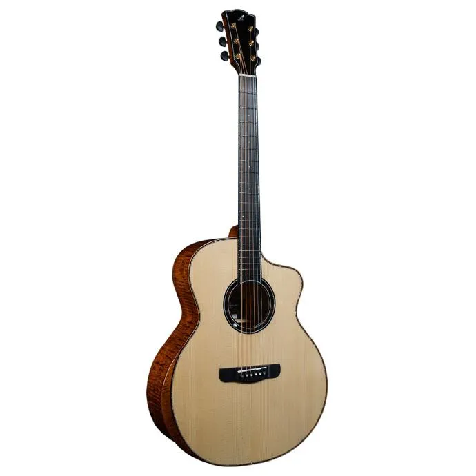 Elektro-akustična gitara Grand Concert oblika s punom prednjom pločom od masivne Europske smreke, tijelom od plamenog masivnog javora i Fishman Presys Blend elektronikom.