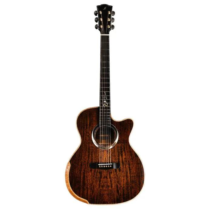 Elektro-akustična gitara grand auditorium oblika s punom prednjom pločom od masivne smreke s furnirom od plamene koe, tijelom od plamene koe i Fishman Presys Blend elektronikom.