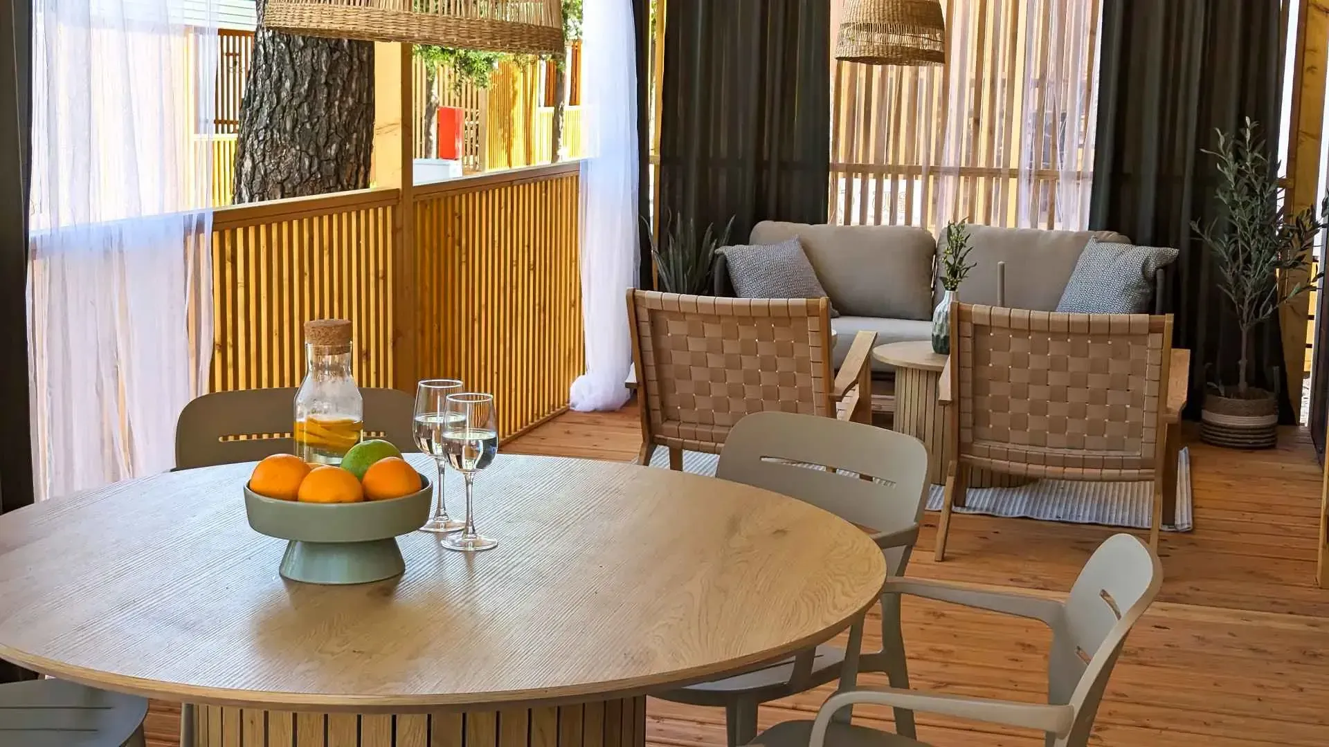 Uživajte u prirodi i udobnosti: Mobilne kućice Jaki u kampu Soline, Biograd na Moru. Smještene u mirnom dijelu kampa s 4 zvjezdice, okružene borovom šumom, naše moderno opremljene mobilne kućice idealne su za do 6 osoba. Uživajte u blizini plaže (2-5 minuta hoda), trgovina i restorana, te šetnici koja vodi do centra grada (15 minuta). Ove kućice nude 2 spavaće sobe i 2 kupaonice, dnevni boravak, veliku terasu s blagovaonskim stolom i lounge prostorom te potpuno opremljenu kuhinju - perilica suđa, mikrovalna pećnica, aparat za kavu, toster, blender, vanjski roštilj. Kućica također uključuje besplatan WiFi, besplatno parkirno mjesto odmah pored kuće, Smart TV, klima uređaj, ručnike i posteljinu. Kamp nudi mnoge sadržaje za cijelu obitelj: prekrasne pješčane i šljunčane plaže koje se protežu sve do centra grada, restoran s mediteranskim specijalitetima, dječje igralište, sportske aktivnosti i najam bicikla. Najveći hrvatski tematski vodeni park Dalmaland udaljen je 15 minuta vožnje automobilom.