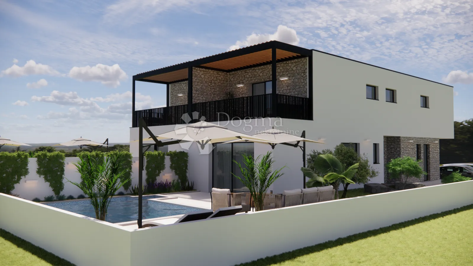 U mirnom naselju u okolici Umaga, na izvrsnoj lokaciji nadomak mora i nedaleko od granice sa Slovenijom, smjestila se moderna kuća ukupne površine 132 m² s uređenom okućnicom od 290 m². Ova nekretnina idealna je za one koji traže udoban, funkcionalan i kvalitetno građen dom u blizini svih sadržaja, ali istovremeno u tišini i privatnosti. Kuća je raspoređena na dvije etaže. U prizemlju se nalazi prostrani dnevni boravak s kuhinjom i blagovaonicom otvorenog tipa, stvarajući povezan i svijetao prostor za svakodnevni život. Na ovoj etaži nalazi se i jedna spavaća soba s vlastitom kupaonicom, što je idealno rješenje za goste ili članove obitelji kojima je potrebna soba u prizemlju. Također, u prizemlju se nalaze praonica, spremište te dodatni WC za goste. Iz dnevnog boravka izlazi se na uređenu okućnicu s bazenom, sunčalištem i prostorom za opuštanje. Unutarnje stepenice vode na kat gdje se nalaze dvije dodatne spavaće sobe, svaka s vlastitom kupaonicom i izlazom na privatnu terasu, što omogućuje dodatnu razinu privatnosti i udobnosti. Pametan raspored prostorija i suvremeni dizajn omogućuju jednostavno spajanje estetike i funkcionalnosti. Kuća će biti opremljena podnim grijanjem u svim prostorijama, putem sustava dizalice topline, dok će hlađenje biti omogućeno putem klima uređaja u svakoj prostoriji zasebno. Ispred kuće nalaze se dva parkirna mjesta, od kojih će jedno biti opremljeno punjačem za električna vozila. Dodatna prednost je priprema instalacija za grijanje bazena. Arhitektonski, kuća se ističe modernim dizajnom s elegantnim kamenim detaljima, a gradi se od visokokvalitetnih materijala i imat će energetski certifikat A+. Trenutno je u fazi visokog roh-bau-a, a dovršetak gradnje planiran je do kraja 2026. godine, čime se budućim vlasnicima ostavlja dovoljno vremena za prilagodbu interijera prema vlastitim željama. Ova nekretnina predstavlja izvrsnu priliku za život, odmor ili investiciju, u jednoj od najpoželjnijih regija hrvatske obale. ID KOD AGENCIJE: IS1516804 Karlo Šestan Asistent u posredovanju Mob: 091/361-1922 Tel: 052/771-458 E-mail: karlo.sestan@dogma-nekretnine.com www.dogma-nekretnine.com