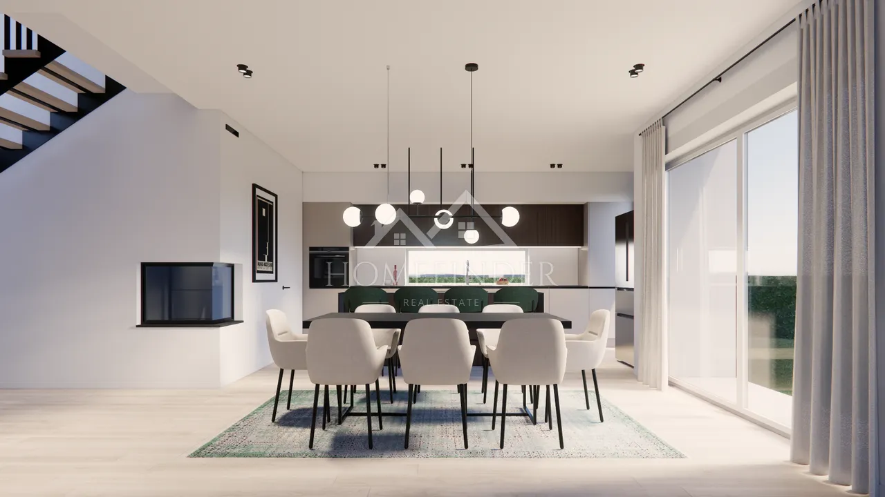 Na području Hrastine Samoborske prodaje se moderna samostojeća kuća neto površine 164 m² (205 m² bruto), novogradnja koja se ističe suvremenim dizajnom, kvalitetnom izvedbom i odlično osmišljenim rasporedom prostora. Prizemlje je organizirano kao prostrani open space dnevni boravak s kuhinjom i blagovaonicom, s izlazom na terasu jugoistočne orijentacije koja pruža puno prirodnog svjetla. U prizemlju se nalaze i radna soba, kupaonica te vešeraj, što omogućuje dodatnu funkcionalnost svakodnevnog života. Na katu su smještene tri spavaće sobe, uključujući master sobu s vlastitom garderobom, te dodatna kupaonica. Poseban naglasak daje velika terasa od 30 m², koja pruža dodatni prostor za opuštanje. Uz kuću se nalazi tehnička prostorija (kotlovnica) s izvedenim instalacijama za vodu, pogodna za održavanje okućnice. Na parceli je i pomoćni objekt površine 22 m² koji trenutno služi kao nadstrešnica za dva vozila, uz mogućnost prenamjene u garažu. Kuća je opremljena dizalicom topline s podnim grijanjem, kvalitetnom keramikom te modernom stolarijom s električnim roletama, što osigurava visoku razinu komfora i suvremen način stanovanja. Dodatno, dostupni su i pripremljeni renderi i nacrti interijera koji mogu olakšati buduće uređenje. U blizini se nalaze škola, trgovine i javni prijevoz, dok je centar Samobora lako dostupan, kao i Zagreb udaljen svega 13 km. Ova nekretnina odličan je izbor za one koji traže modernu kuću s funkcionalnim rasporedom i kvalitetnom opremom. Za dodatne informacije ili dogovor termina razgledavanja, slobodno se javite. ID KOD AGENCIJE: 972 Borna Rezo Suradnik u procesu obuke Mob: 099 783 5832 E-mail: b.rezo@homefinder.hr www.homefinder.hr