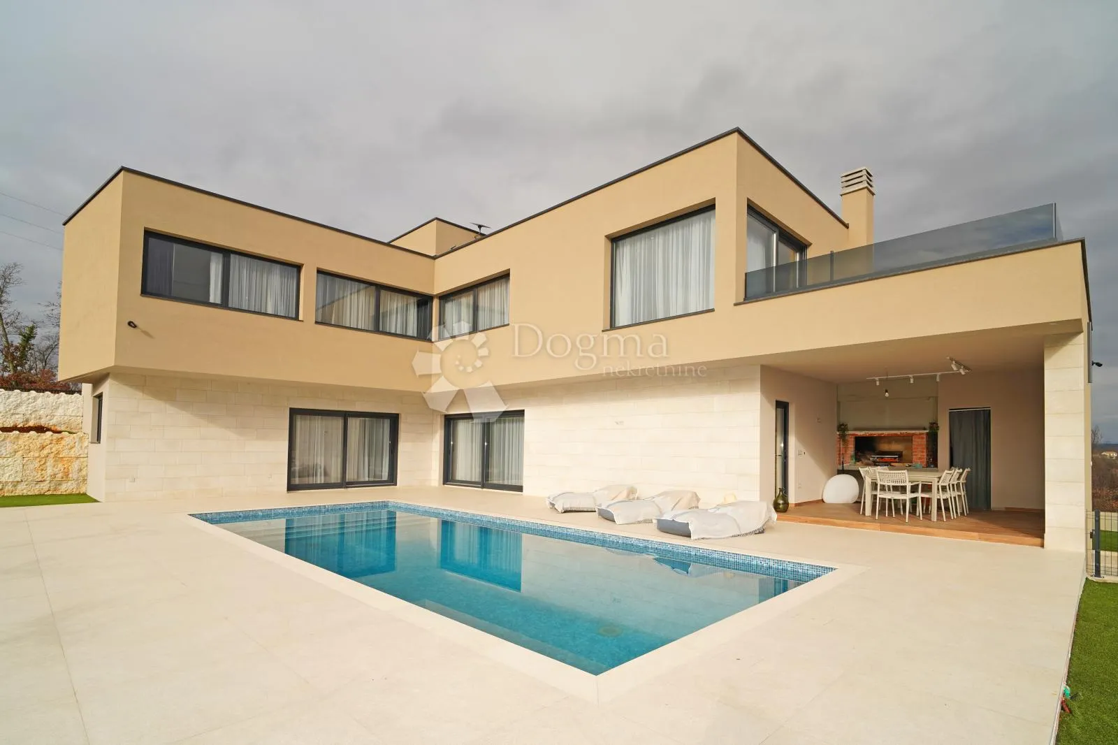 U mirnom i zelenom okruženju u srcu Istre na parceli od 780 m² smjestila se moderna luksuzna vila koja predstavlja savršen spoj suvremenog dizajna, privatnosti i hedonističkog načina života. Osmišljena kao privatna rezidencija s karakterom, vila nudi iskustvo življenja koje nadilazi klasičan pojam doma. Interijer je koncipiran kao elegantan lifestyle prostor u kojem se dnevni boravak, kuhinja po mjeri i blagovaonica prirodno nadovezuju na vanjske terase i lounge zone. Velike staklene stijene brišu granice između interijera i eksterijera, dok prirodna svjetlost dodatno naglašava čistoću linija i profinjenost materijala. Vila raspolaže s četiri prostrane spavaće sobe, od kojih svaka ima vlastitu kupaonicu, osiguravajući maksimalnu privatnost i komfor. Glavna spavaća soba dodatno se ističe vlastitim balkonom, s kojeg se za vedrih dana pruža pogled na Učku, što prostoru daje posebnu dozu ekskluzivnosti. Poseban naglasak stavljen je na wellness i uživanje – vila uključuje privatnu sobu za masažu, dok vinoteka stvara intiman ambijent za ljubitelje vina i opuštena večernja druženja. Dodatnu funkcionalnost osiguravaju dvije velike ostave, diskretno uklopljene u raspored kuće. Eksterijer vile osmišljen je kao privatna oaza za boravak na otvorenom tijekom cijele godine. Grijani bazen površine 50 m² okružen je grijanom plažom od približno 100 m², stvarajući izniman komfor i u hladnijim mjesecima. Lounge zona i vanjski roštilj dodatno upotpunjuju doživljaj luksuznog boravka na otvorenom. Vila je opremljena podnim grijanjem, dizalicama topline, klimatizacijom u svim prostorijama te je građena prema visokim energetskim standardima. U najnižoj etaži ispod kuće nalazi se podstanica odnosno dodatno spremište, idealno za tehničke potrebe ili skladištenje. Svaka etaža vile ima vlastitu septičku jamu, što dodatno doprinosi funkcionalnosti i neovisnosti objekta. Posebna prednost ove nekretnine je mogućnost kupnje dodatne parcele uz vilu, u vlasništvu istog vlasnika, čime se osigurava još veća razina privatnosti ili prostor za dodatne sadržaje – rijetka i iznimno vrijedna opcija na tržištu luksuznih nekretnina. Ova nekretnina idealna je kao ekskluzivna privatna rezidencija, ali i kao investicija u luksuzni turistički najam najviše kategorije. Za dodatne informacije i ogled ove nekretnine vrijedne pažnje možete me kontaktirati Suzana Filipović Asistent u posredovanju suzana.filipovic@dogma-nekretnine.com MOB: 0919332504 ID KOD AGENCIJE: IS1519586 Suzana Filipović Asistent u posredovanju Mob: 091/933-2504 Tel: 052/771-458 E-mail: suzana.filipovic@dogma-nekretnine.com www.dogma-nekretnine.com