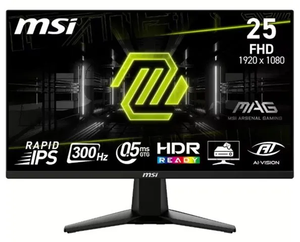 Monitor 25¨ MSI / MAG 255XF / 9S6-3BC21M-061 | MSI Gaming Monitor / Curve 1500R / 24.5" (62.23 cm) / 1920x1080 (FHD) / 16: 9 /0.2832 (H) x 0.2802 (V) / RT; 0.5ms ; Refresh Rate ; 300 Hz/ 1 x DP1.4a / 2 x HDMI™ 2.0b 1 x Headphone-out /3y