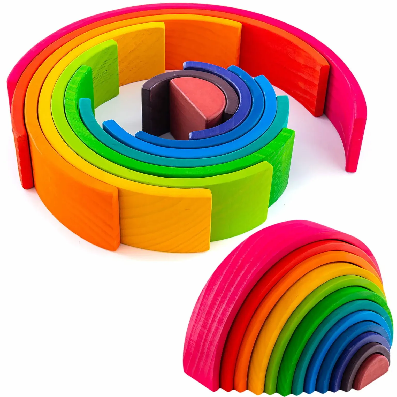 Rainbow drvene kocke odlikuju se jedinstvenim oblikom i veličinom, zahvaljujući kojima ih mogu koristiti i manja djeca bez straha da će progutati neki od elemenata, a šarene boje privući će i potaknuti igru.