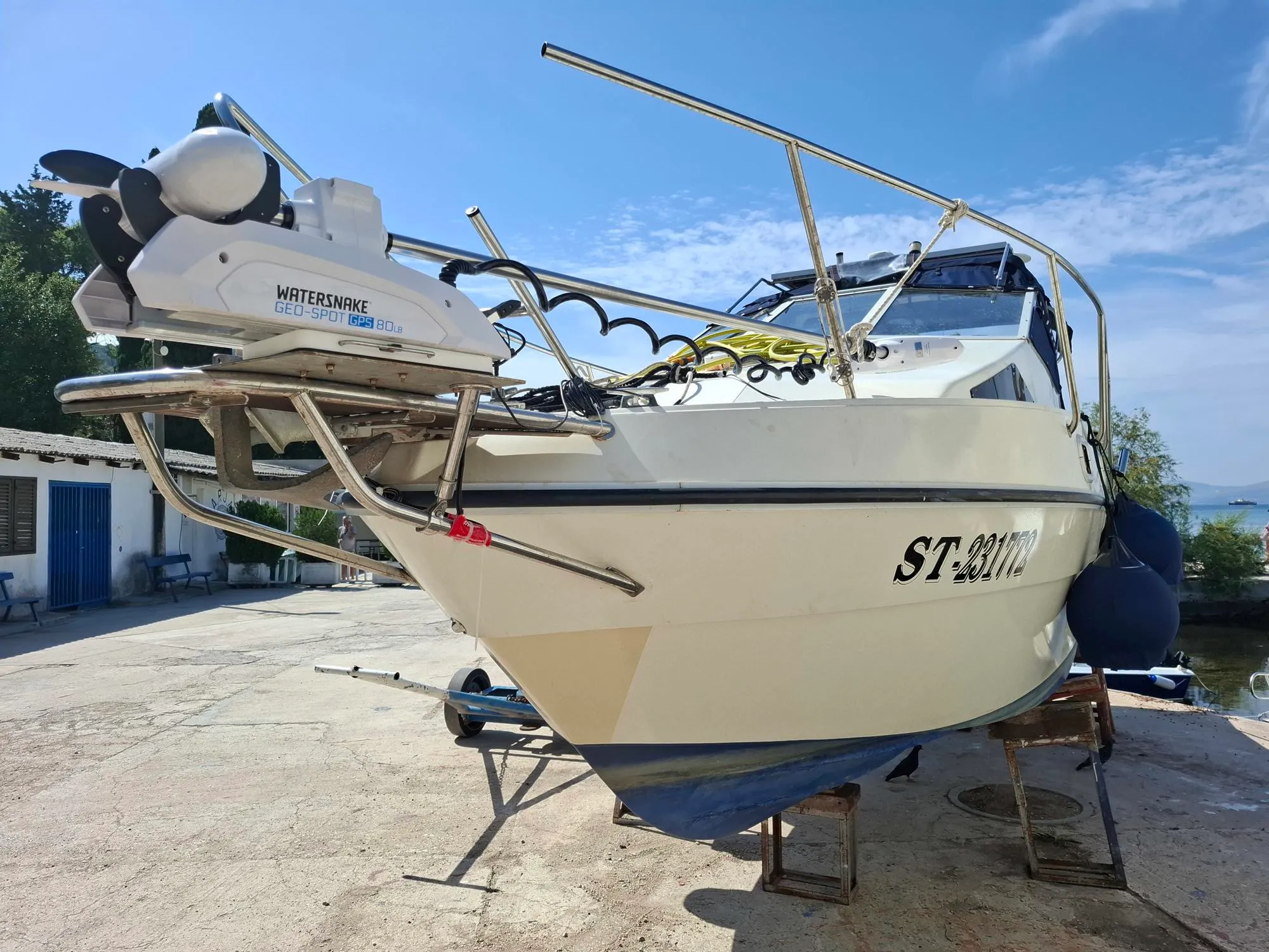 Od opreme brod posjeduje: 50 Ltr., frižider, TV, radio s USB priključkom, GPS ploter Garmin 7 i fish finder Garmin 9, reflektor, kompletnu LED rasvjetu,