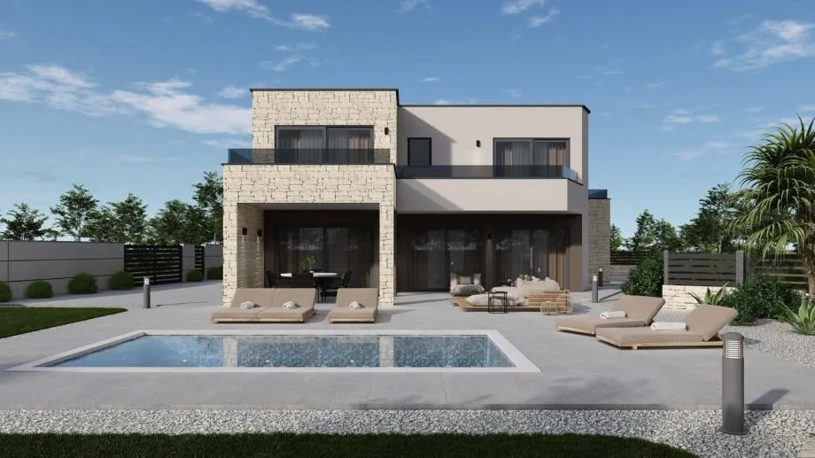 Prodaje se moderna vila sa bazenom u izgradnji kod Muntrilja sa otvorenim pogledom na more.