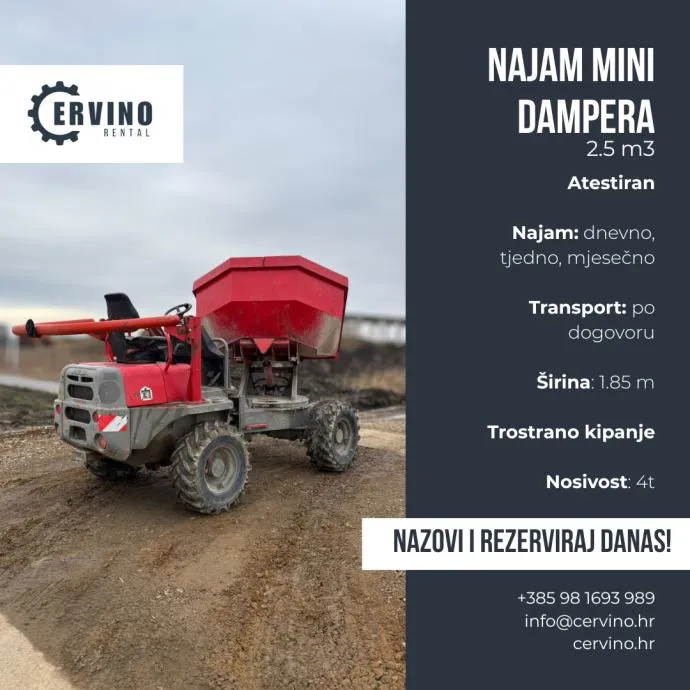 Cervino d.o.o., za iznajmljivanje građevinske mehanizacije i opreme na području Slavonije i Baranje.