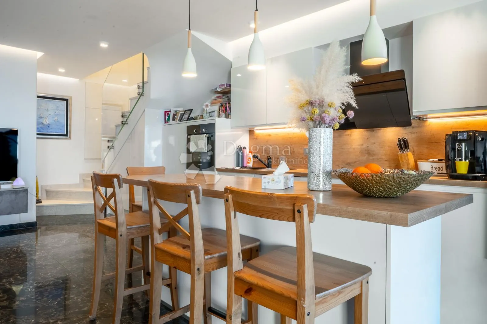 Ovo je stan koji ostavlja dojam. Predivno isplanirani prostor. U prizemlju prostran, prepun svjetlosti dio za boravak cijele obitelji. Raskošna terasa, pogled koji osvaja, prostor boravka , kuhinje i toaleta za goste. Na katu tri sobe, dvije klasične i jedna roditeljska. Ta roditeljska je onaj šećer na kraju. Priroda koja kroz zid-prozor ulazi u sobu, luksuzna kupaonica i more koje se spaja na obzoru. Romantika na najjače. Definitivno savršeno! Nemojte dvojiti nazovite 091 125 07 70 . GORDANA HORVAT ILIĆ ID KOD AGENCIJE: id14192 Gordana Horvat-Ilić Agent s licencom Mob: 091/125-0770 Tel: +385 51 341 080 E-mail: gordana.ilic@dogma-nekretnine.com www.dogma-nekretnine.com