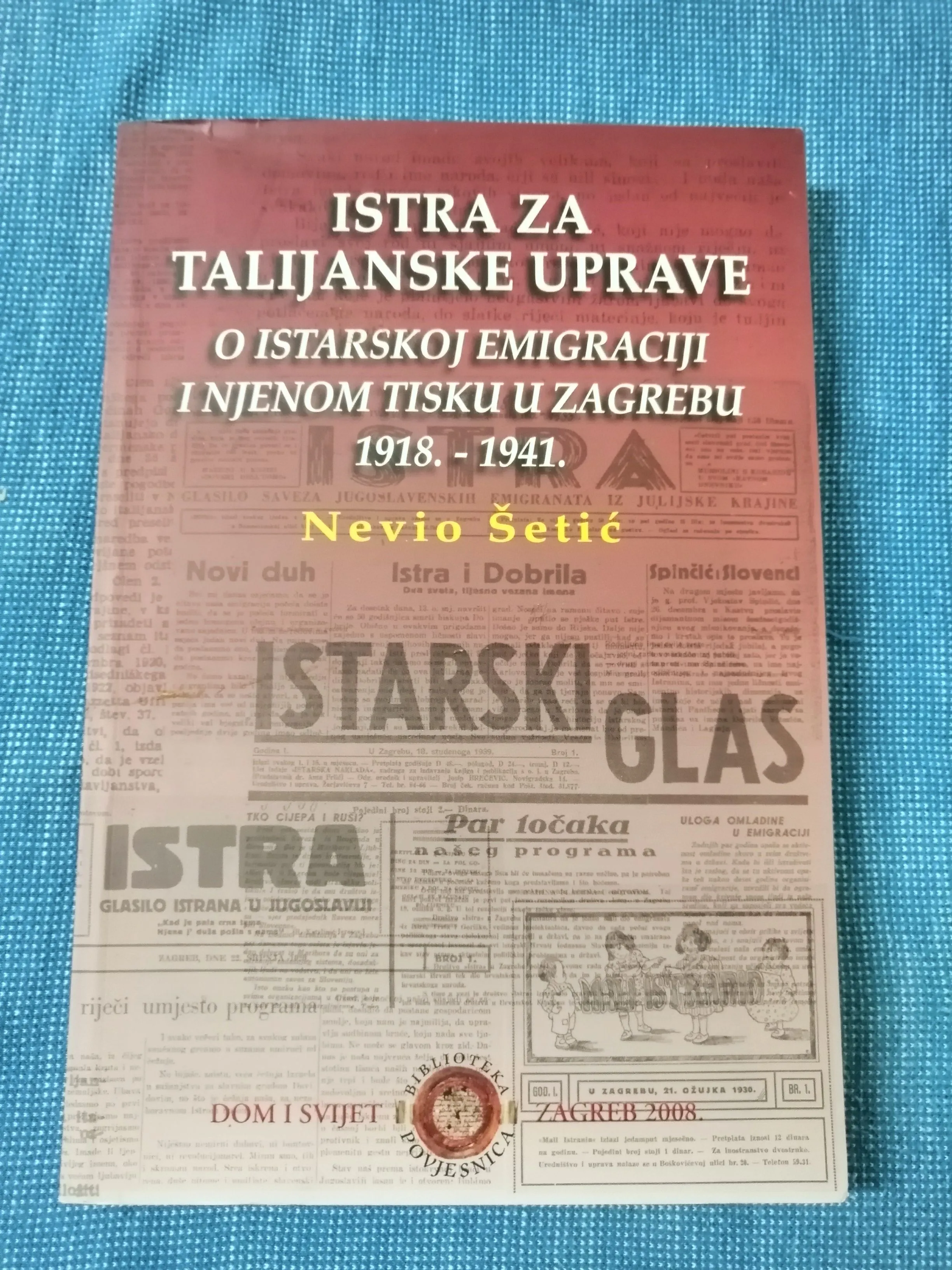 Nevio Šetić – Istra za talijanske uprave : O istarskoj emigraciji i njenom tisku u Zagrebu 1918. – 1941.