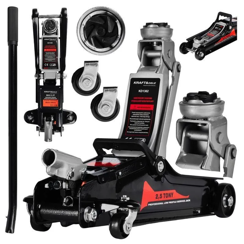 Kraft&Dele KD1362 je robustan i pouzdan niskoprofilni hidraulični podizač s nosivošću do 2,5 tone, dizajniran za sigurno i efikasno podizanje vozila s niskim podvozjem.
