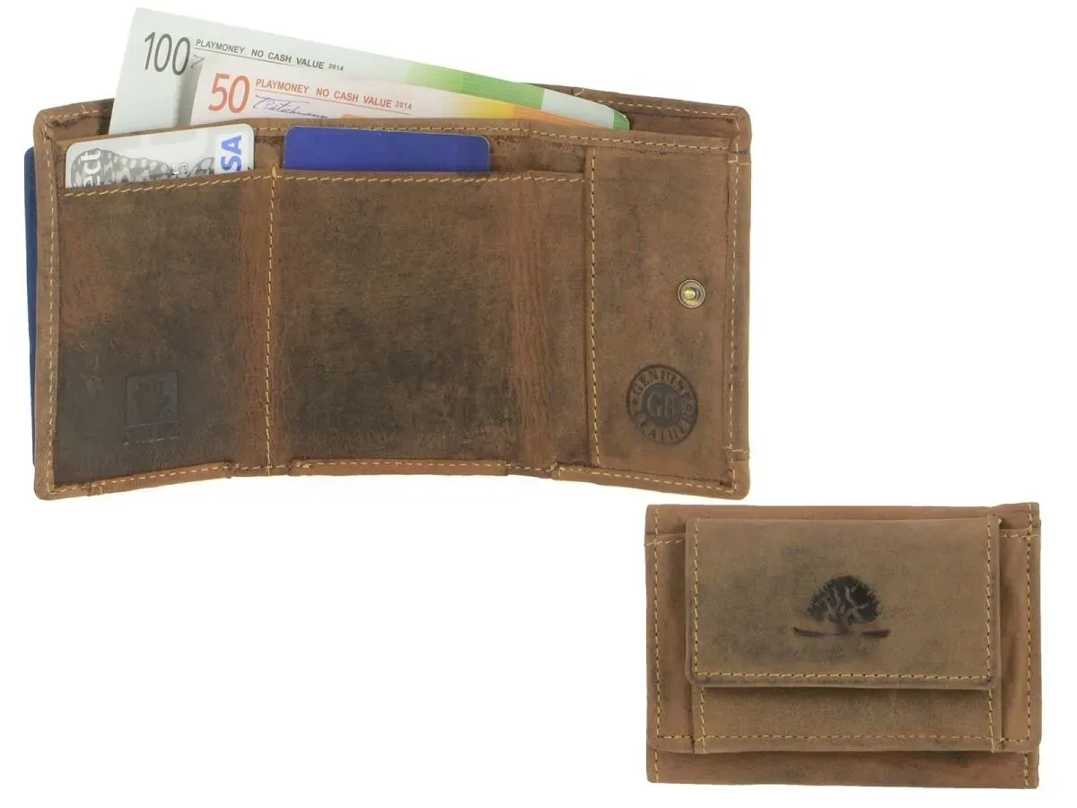 Novčanik nije samo vizualno privlačan i iznimno moderan. Što se tiče funkcionalnosti i raznolikosti namjena, novčanik ima što ponuditi. Sa ukupno 5 utora za kartice i dva utora za novčanice, mogu se smjestiti najvažnija svakodnevna sredstva plaćanja. Isto vrijedi i za kartice osiguranja, članske iskaznice i vozačke dozvole. Pretinac za sitniš, koji ima dodatno kožno dno, izrađuje se zasebno. Kožna baza daje novčaniku dodatnu stabilnost. Zbog izuzetno malog dizajna, kožni novčanik zauzima vrlo malo prostora i stoga će zajamčeno pronaći odgovarajuće mjesto u svakom džepu hlača. Vizualni dojam upotpunjuje reljefni logo. U proizvodnji proizvoda koristi se samo visokokvalitetna polirana goveđa koža. Antikna smeđa goveđa koža mini torbice dobiva svoj jedinstveni, nepogrešivi izgled kroz proces brušenja.
