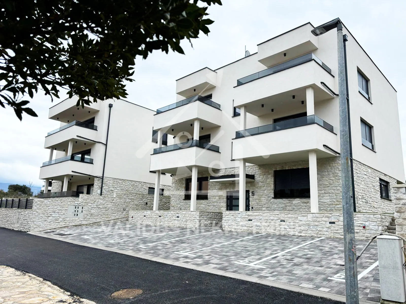 Prodaje se apartman koji se nalazi u novoizgrađenoj zgradi izuzetno kvalitetne gradnje. Stan se sastoji od dnevnog boravka, blagovaone, kuhinje, kupaonice, spavaće sobe, balkona i vanjskog parkirnog mjesta, ukupne neto korisne površine cca 57,51 m2. Predmetni stan ima tlocrtnu neto površinu 52,45 m2. Balkon ima bruto površinu 7,70 m2, uz obračunski koeficijent 0,25 %, što iznosi neto 1,93 m2. Parkirno mjesto oznake PM 5 imat površinu 12,50 m2 uz obračunski koeficijent 0,25%, što iznosi neto 3,13 m2.