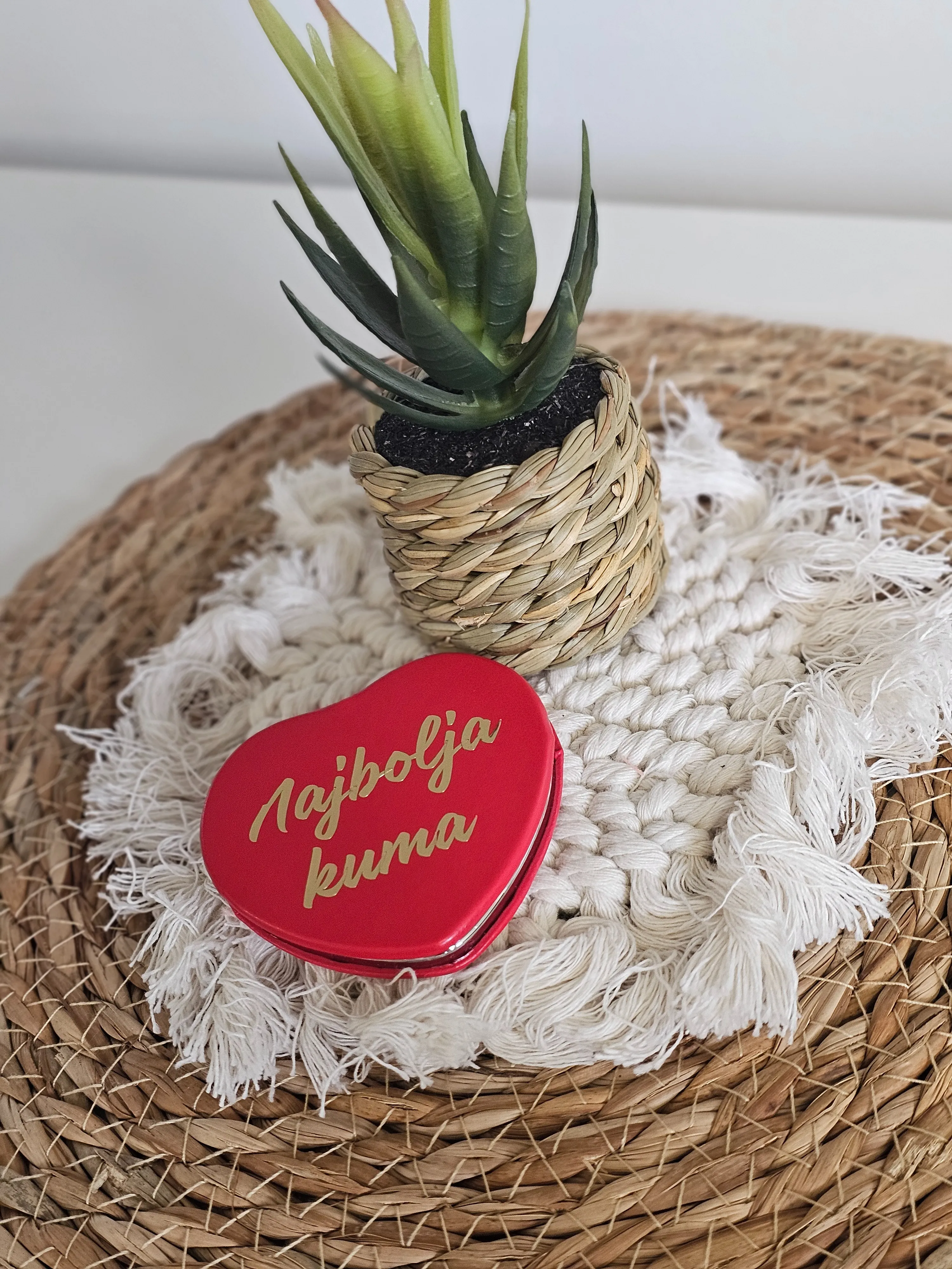 Vanjska strana ogledala može se personalizirati tekstom po želji, pri čemu tekst ne smije biti duži od tri riječi (npr. Najbolja kuma, Zauvijek moja, Volim te).