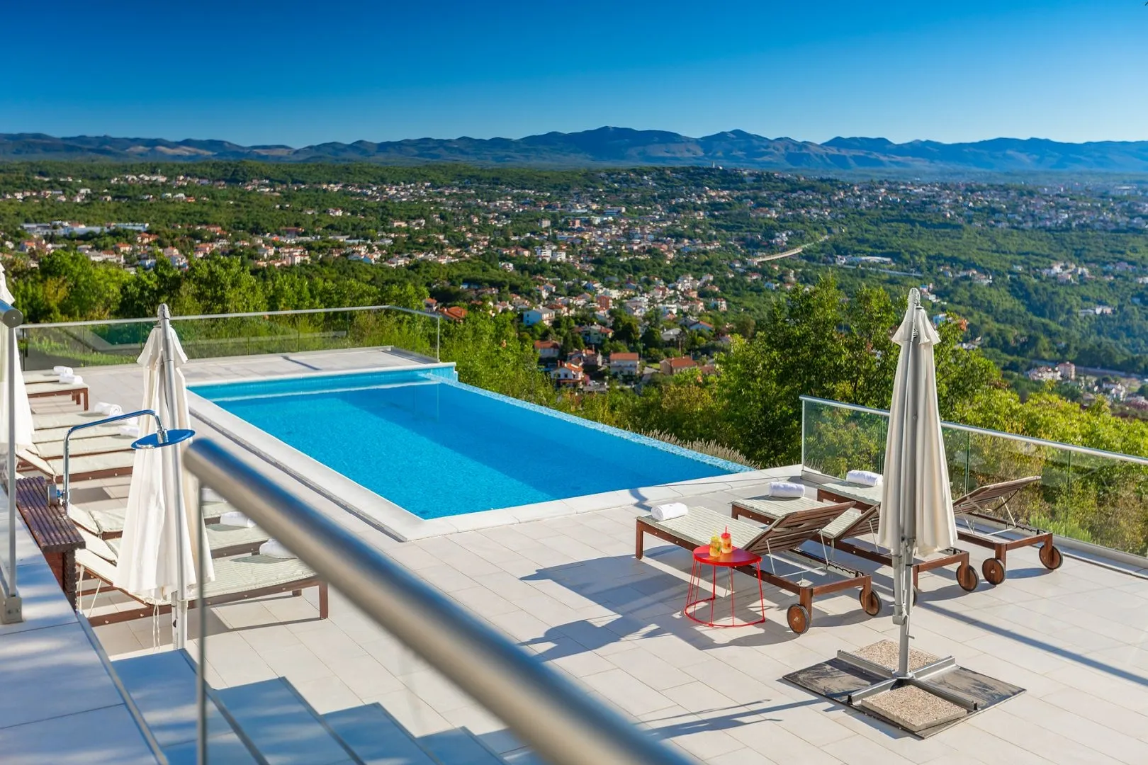 Opatija, Bregi - Raskošna vila s četiri velika stana i očaravajućim pogledom na Kvarnerski zaljev u prirodnom okruženju Bregi su naselje okruženo zelenilom i prekrasnom prirodom iznad grada Opatije, šarmantnim turističkim odredištem bogate povijesti. Naselje se nalazi u podnožju planine Učka iz kojeg se pruža neprocijenjivi pogled na more i okolne otoke Krk i Cres te je zbog toga vrlo mirna i tražena lokacija koja obiluje prekrasnim obiteljskim kućama s okućnicama i ograđenim vrtovima. Za svega desetak minuta automobilom stiže do poznatih turističkih mjesta Opatijske rivijere koja nude bogatu ugostiteljsku ponudu, te niz kulturno zabavnih događanja u koje god doba godine došli, što omogućuje kvalitetan i sadržajan odmor. U Opatiji i bližoj okolici veliki je izbor plaža, kristalno čisto more i raznovrsne turističke usluge. Na prodaju smo dobili predivnu veliku vilu s četiri stambene jedinice ukupne površine 575 m2. Sagrađena je na okućnici površine 2463m2 u mirnom i zelenom dijelu Bregi, a iznad same Opatije. Ova potpuno opremljena vila južne orijentacije smještena je na prekrasnom brežuljku koji se uzdiže iznad Kvarnerskog zaljeva. Unutrašnjost je moderno uređena, s minimalističkim pristupom. Čiste, ravne linije i puno stakla naglašavaju otvoreni koncept rasporeda. Sastoji se od 4 etaže , koje su zasebne jedinice povezane s vanjskim stubištima. U prizemlju je stan (105m2) koji ima izravan izlaz na sunčalište i bazen te se sastoji od dvije spavaće sobe, kupaonice, saune i velikog dnevnog boravka s blagovaonicom i potpuno opremljene kuhinje. Na prvom katu se nalazi stan (110m2) koji se sastoji od tri sobe, dvije kupaonice, dnevnog boravka, blagovaonice te potpuno opremljene kuhinje i velike terase. Na drugom katu se nalazi stan (110m2) koji se sastoji od blagavaone, dnevnog boravka s kuhinjom, tri sobe, kupaonice i ostave. Također ispred stana postoji funkcionalno veliko spremište. Na najgornjem katu se nalazi penthouse (250m2), koji se prostire na dvije razine (dvoetažni) s četiri sobe, dvije dnevne sobe, potpuno opremljene kuhinje i blagovaonice, radne sobe, pet kupaonica, dva balkona te krovnom terasom. Vrlo efikasno grijanje i hlađenje je na dizalice topline a u kupaonicama je dodatno provedeno i podno grijanje. Na okućnici iza kuće je veliki prostor s šest parkirnih mjesta te velika garaža od 46m2. Ispred kuće smješten predivan infinity grijani bazen površine 36m2 i sunčalište za uživanje u pogledu i opuštanje te roštilj. Nalazi se na odličnoj i mirnoj lokaciji okružena zelenilom sa potpunom privatnošću. Zbog svog smještaja, rasporeda prostora te okućnice s bazenom odlična nekretnina koja je prilagođena stanovanju i kao investicija u već uhodani posao turističkog najma. Moguća je konzultacija u vezi daljnjeg vođenja kuće i turističkog najma, termini gledanja su vrlo fleksibilni, obratite se agentu 0913925735 Ne propustite ovu priliku! Poštovani klijenti, agencijska provizija se naplaćuje u skladu s Općim uvjetima poslovanja. https://www.dux-nekretnine.hr/opci-uvjeti-poslovanja ID KOD AGENCIJE: 21242 Josip Gudeljević Agent s licencom Mob: +385 91 392 5735 Tel: +385 91 480 8808 E-mail: josip@dux-nekretnine.hr www.dux-opatija.com