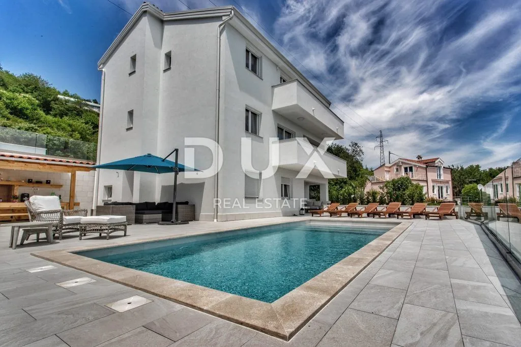 OPATIJA, BREGI - Vila 320m2 s panoramskim pogledom i bazenom + okoliš 500m2 Vila se nalazi iznas Opatije, na obroncima Učke. Tik do parka prirode, ova ljepotica pruža priliku za sjajan odmor ili miran obiteljski život. Bilo da volite more ili planine, ova pozicija nudi vam sjajnu priliku da uživate u svim blagodatima koje nudi ovaj kraj. Vila ima dva kata i svaki je napravljen s posebnim ulazom, ali u turističkoj sezoni iznajmljuje se u cijelosti. Odlična je to prilika za one koji žele obiteljsku kuću ali i za one koji traže kuću za odmor (iznajmljivanje) s prijateljima pa tako možete imati i dozu privatnosti ukoliko vam zatreba. Donji kat kuće ima jednu sobu, dok gornji ima tri. Svaka soba ima i vlastitu kupaonu, a nakon mnogobrojnih izleta i uživanja u prirodi, možete se odmoriti i u sauni koju ima ova ljepotica. Kuća ima i veliki bazen, a pogled koji se pruža s terase seže preko Rijeke, Krka, Cresa, pa sve do Istre. Cijeli Kvarner čini vam se kao na dlanu. Ipak, ono što je najvažnije, ova je kuća okružena prirodom pa stoga i zrači dobrom energijom. Svakako lijepa nekretnina za luksuzan obiteljski život, ali pogodna i kao investicija u vidu elitnog turizma. UNIKATNA NEKRETNINA SVAKAKO VRIJEDNA PAŽNJE NA ODLIČNOJ LOKACIJI!!! Poštovani klijenti, agencijska provizija naplaćuje se u skladu s Općim uvjetima poslovanja: www.dux-nekretnine.hr/opci-uvjeti-poslovanja ID KOD AGENCIJE: 8538 Patrik Hrštić Agent s licencom Mob: +385 91 270 3979 Tel: +385 91 480 8808 E-mail: patrik@dux-nekretnine.hr www.dux-opatija.com
