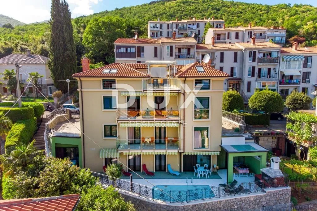 OPATIJA, ekskluzivna villa od 370 m2 s bazenom i fenomenalnim pogledom na more, na lijepoj lokaciji nedaleko mora i centra. Villa je izgrađena 2008. godine na parceli od 386m2 od toga na parkiralište, sunčalište, roštilj, bazen, i terasu u prizemlju odpada 195m2. Ima prekrasne staklene balkone, terasu s bazenom i vanjskim kaminom te veliki ograđeni parking. Vila se sastoji od 3 stambene jedinice, vrlo moderno uređene i opremljene: • prizemlje: stan od 125 m2 - 3S+DB • prizemlje i 1. kat: dvoteažan stan od 111 m2 - 3S+DB • 2. kat i visoko potkrovlje: dvoetažan stan od 135 m2 - 3S+DB Prvi stan je u prizemlju i ulaz je sa strane stubišta. Proteže se cijelim prizemljem i sastoji od open space prostora koji objedinjuje veliki dnevni boravak, kuhinju i blagovaonu, 3 sobe, 3 kupaonice te ostava. Svaka soba je južne orijentacije i ima izlaz direktni na bazen i sunčalište. Drugi stan je dvoetažan i ulaz je s gornje strane iz dvorišta. Na katu se nalaze tri sobe i tri kupaonice. Sve sobe su južne orijentacije od kojih jedna ima i veliki balkon. Treći stan se ulazi također iz dvorišta te stepenicama se dižemo na kat na kojem se nalazi open space prostor koji objedinjuje dnevni boravak, kuhinju i blagovaonu, master soba s kupaonicom te mala ostava. Iz sobe i dnevnog boravka postoji izlaz na veliki balkon. Unutarnjim stubištem dolazi se do visokog potkrovlja na kojem se nalaze dvije sobe s vlastitom kupanicom i velike lijepe krovne terase s fenomenalnim pogledom na more. Grijanje je centralno na plin te svaka soba i dnevni boravak ima klima uređaj. Smještena je u mirnom okruženju, na samo 2 minute vožnje autom do centra Opatije. Ova divna kuća je fantastična prilika za one koji vole uživati u očaravajućem pogledu na more i biti blizu svih sadržaja. Poštovani klijenti, agencijska provizija naplaćuje se u skladu s Općim uvjetima poslovanja www.dux-nekretnine.hr/opci-uvjeti-poslovanja ID KOD AGENCIJE: 29723 Josip Gudeljević Agent s licencom Mob: +385 91 392 5735 Tel: +385 91 480 8808 E-mail: josip@dux-nekretnine.hr www.dux-opatija.com