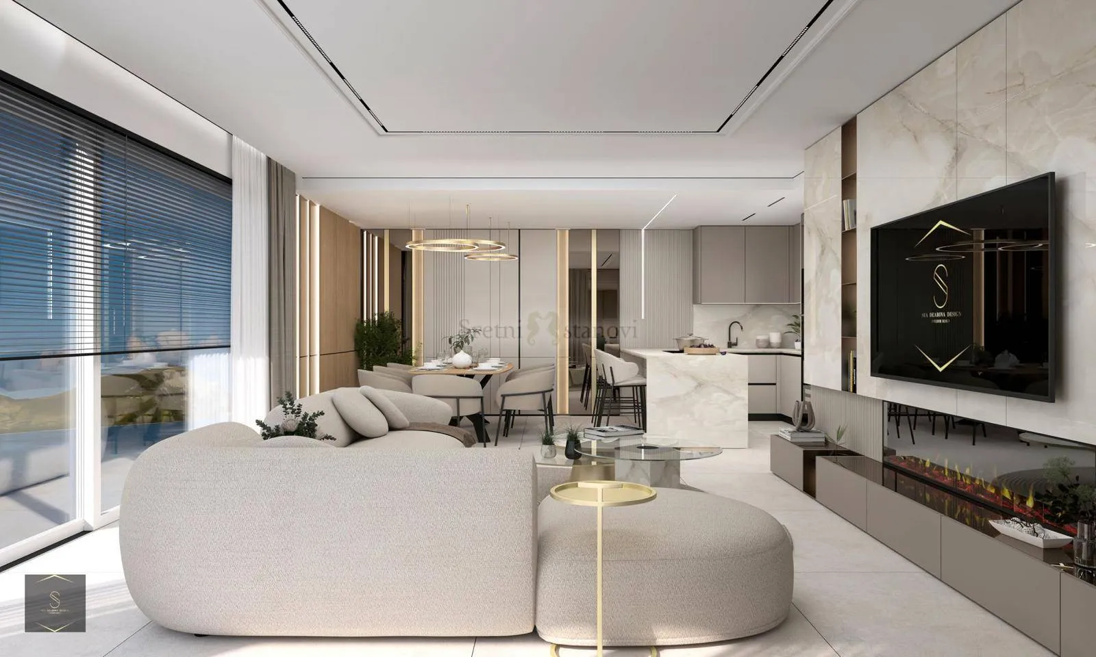 Ekskluzivni stan u izuzetno luksuznoj novogradnji u Opatiji na atraktivnoj lokaciji na svega 500 metara od centra i 250 metara od mora sa pogledom iz snova na more, centar Opatije i čitav Kvarner. U gradnji su korišteni najkvalitetniji materijali a u stan je ugrađena visoko kvalitetna i moderna oprema; vanjska i unutarnja stolarija, sanitarije, armatura, podne i zidne obloge. Zahvaljujući izuzetnoj lokaciji pogled iz stana je bajkovit, atraktivan, panoramski odnosno osjećaj je kao da sa terase možeš uskočiti na atraktivne terase centra Opatije i Lida, na koje se iz stana gleda "kao da su na dlanu". U suterenu je garaža sa 14 parkirnih mjesta od kojih svakom stanu pripadaju po 2. Stan je u prizemlju (u naravi prvi kat) i ima okućnicu s bazenom, te je u cjelosti namješten luksuznim kuhinjskim i sobnim namještajem, te opremljen najmodernijim kućanskim apartaima i tehnologijom. Grijanje je podno, dizalica topline, a stan je i klimatiziran posebnim sustavom za hlađenje. Atraktivost ove novogradnje teško je opisati riječima te ju svakako treba obići s našom agenticom, pogledati je, osjetiti i doživjeti ugođaj i lijepotu koju pruža. Čisto vlasništvo i uredni papiri gradnje. Useljenje 7. mjesec 2024. godine. Poštovani klijenti, proviziju naplaćujemo sukladno općim uvjetima poslovanja i cjeniku tvrtke posrednika Sretni stanovi d.o.o. ID KOD AGENCIJE: 6622 Helga Zeneral Mob: 099 415 8314 Tel: 051/301-502 E-mail: helga@sretnistanovi.hr www.sretnistanovi.hr